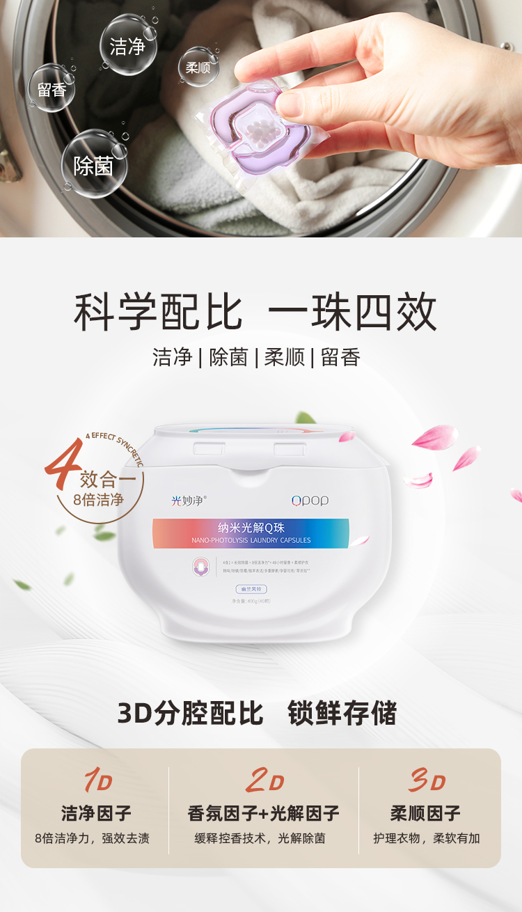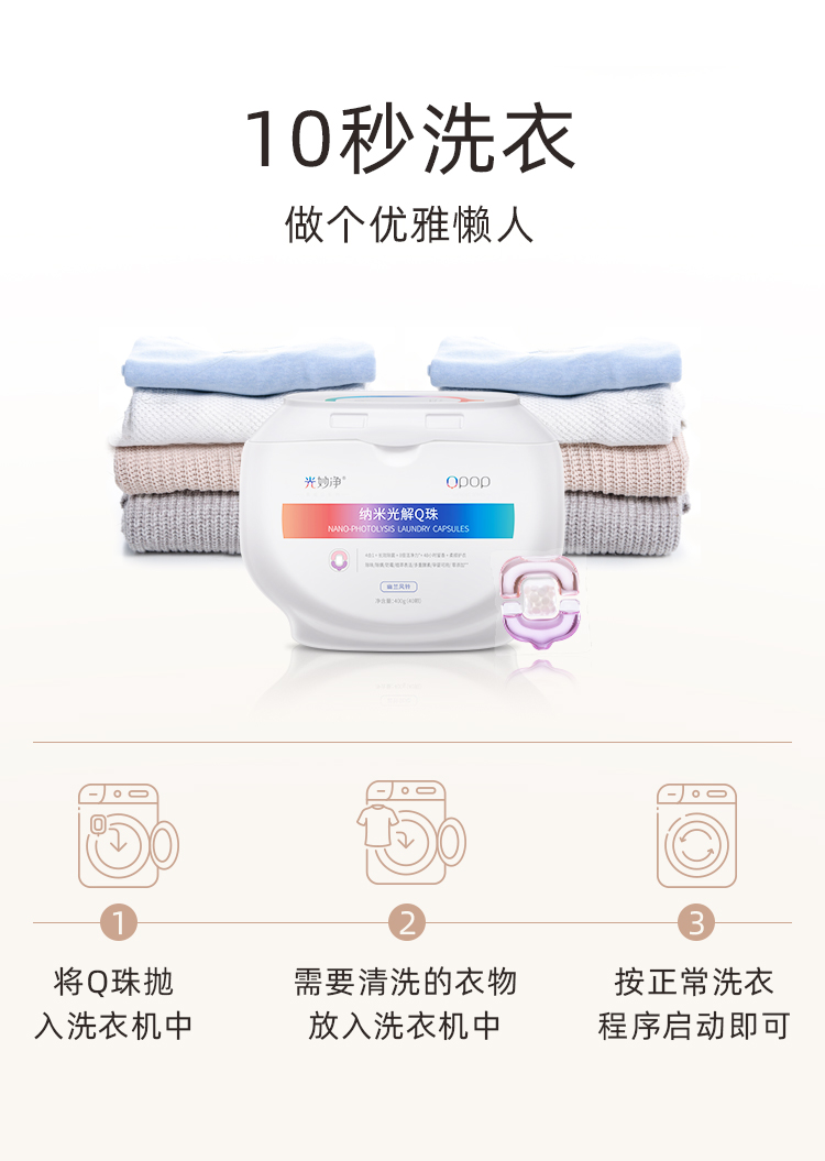 八倍洁净洗护四合一 | 光妙净 纳米光解洗衣Q珠400g[福利品]