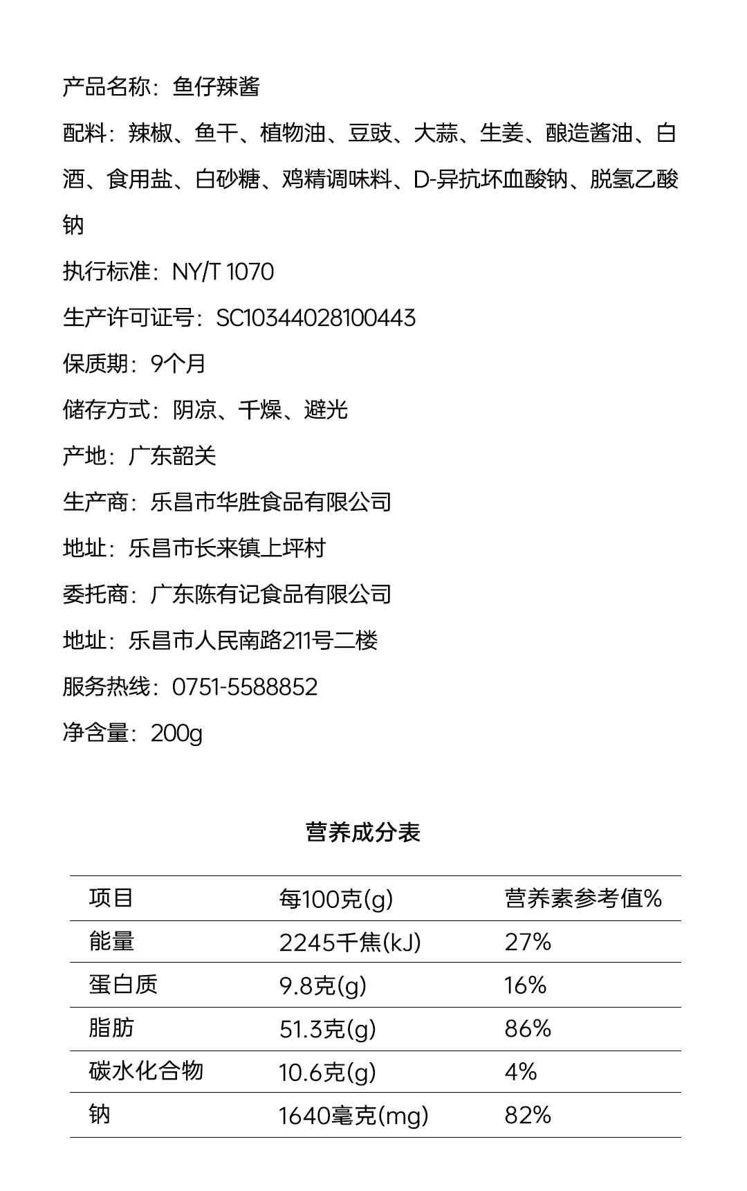 【乐昌帮扶】陈有记 鱼仔辣酱 200g