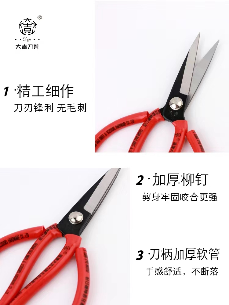 大吉民用剪 2号套管剪刀工业 家用剪刀红色柄剪刀