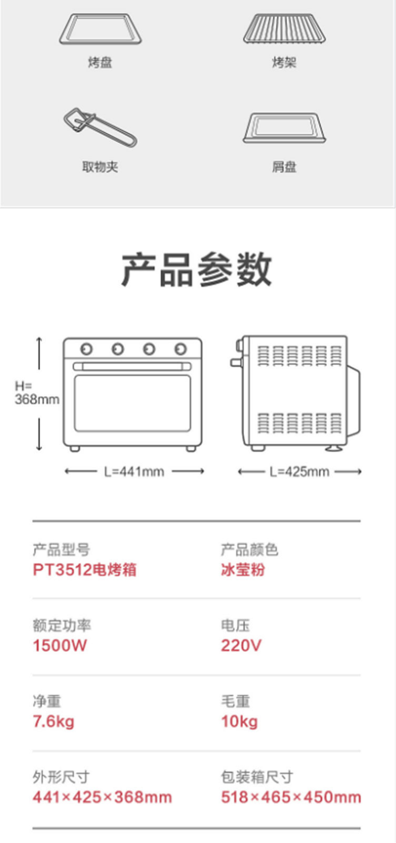 美的家用台式多功能电烤箱 35升 机械式操控 精准双控时 专业烘焙 电烤箱PT3512