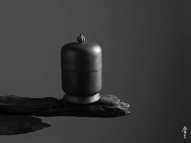 器型来源:仿古,竖直阔口,型如宝塔。气密性极好,适合储存各形茶叶,上至大叶种散茶,小至碎茶。罐身敦厚,罐钮古拙,置入茶席,不争不抢。