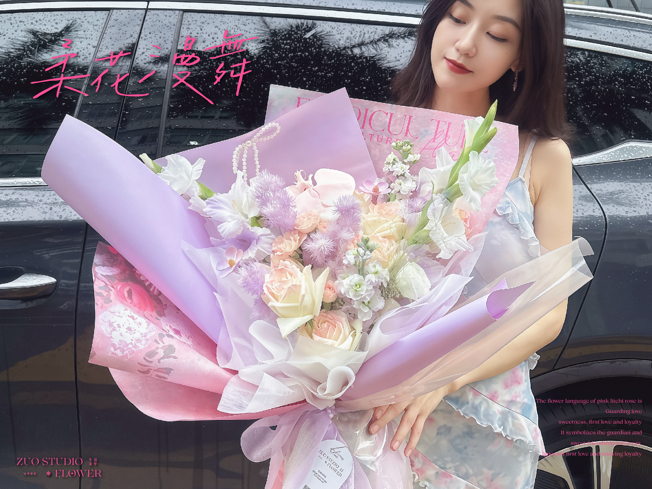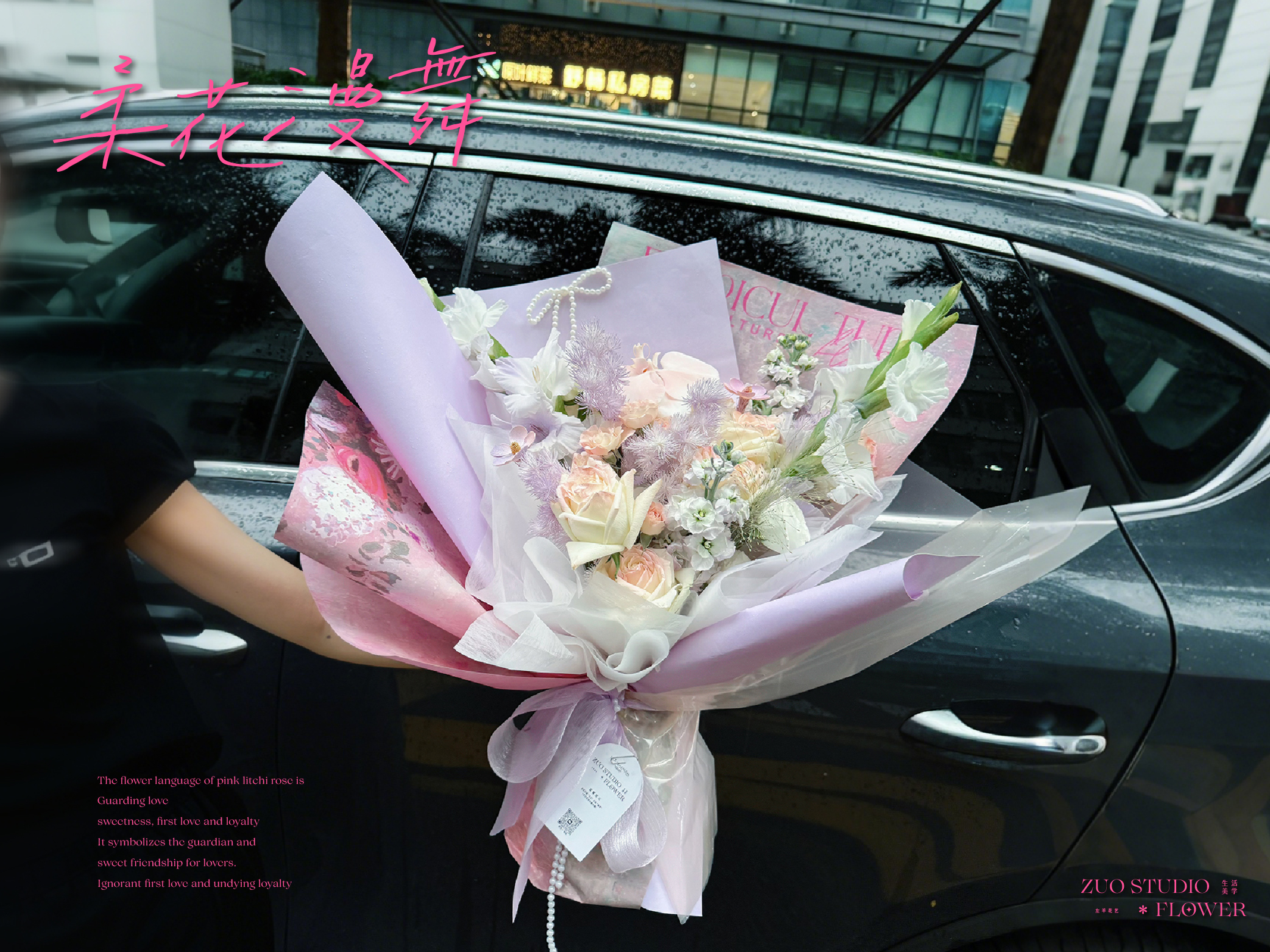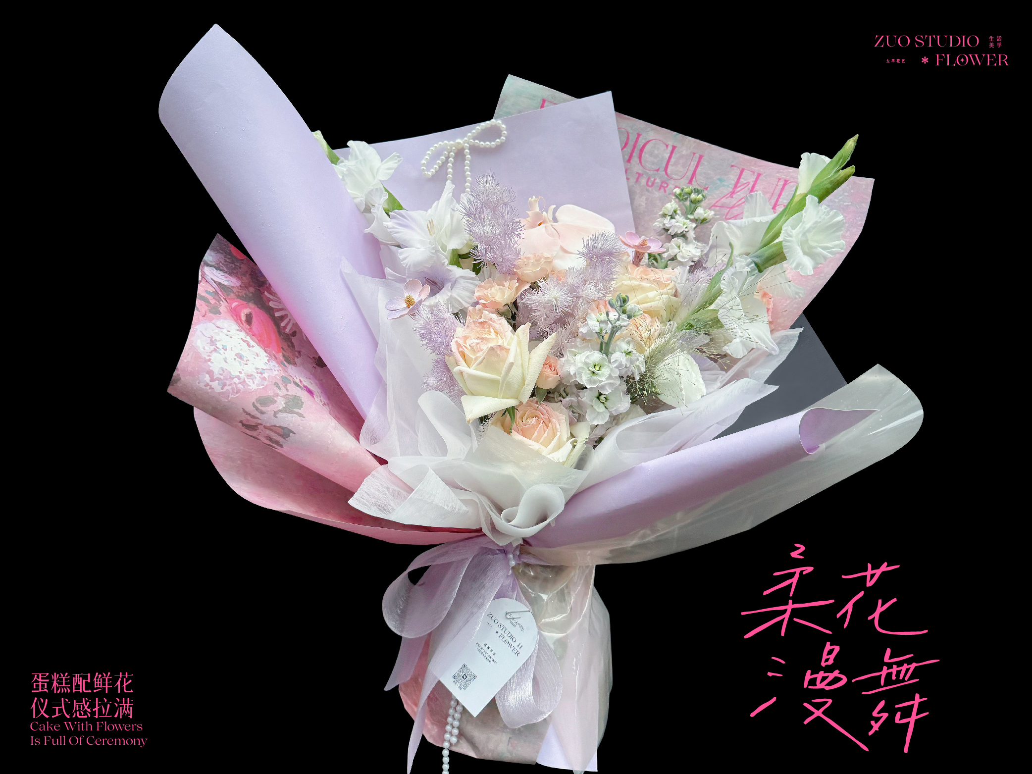 奢华款【柔花漫舞】白玫瑰9支/白罗兰2支/洋桔梗5朵/蓬莱松4支/剑兰2支/折射玫瑰5朵/氛围感鲜花/仪式感鲜花
