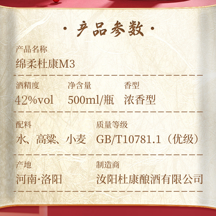 杜康绵柔M3低度纯粮优级白酒42度整箱6瓶装喜宴用酒