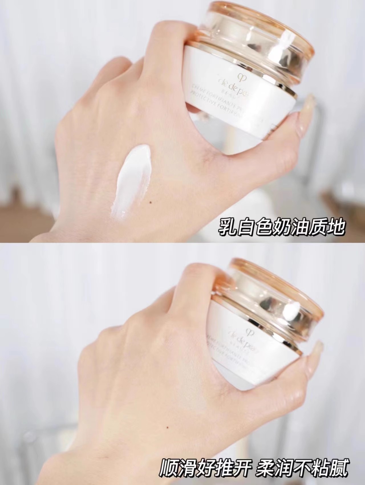 软润的乳霜质地比日霜梗轻薄水润些
