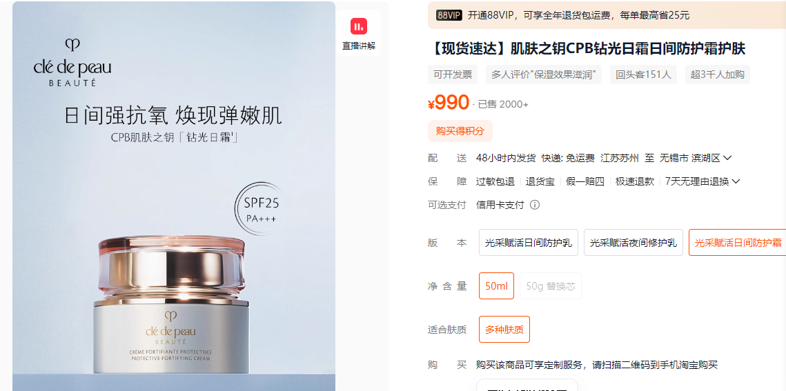 官网价值¥990的日霜