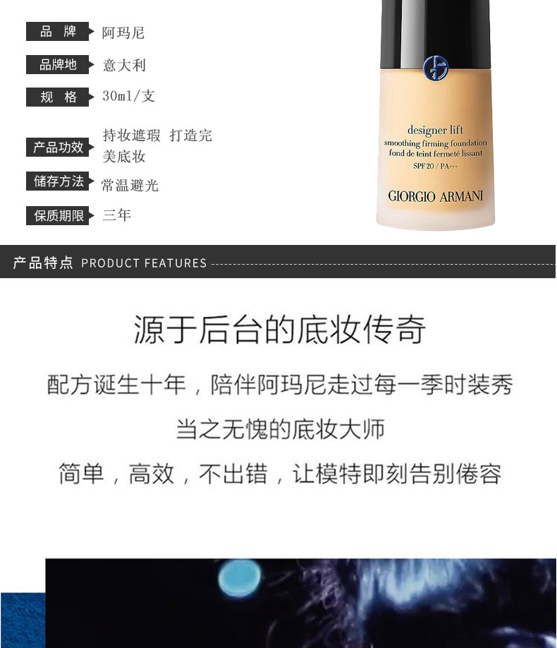 意大利 ARMANI阿玛尼 造型紧颜蓝标大师粉底液 30ML