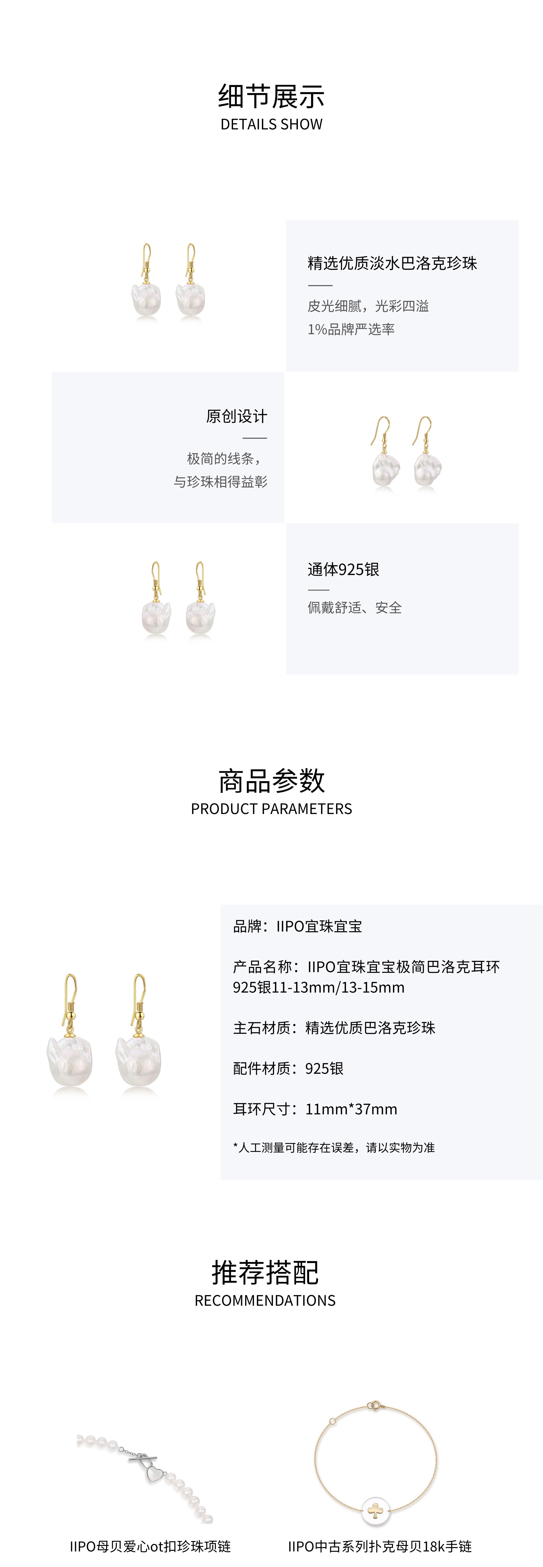 IIPO宜珠宜宝极简巴洛克耳环925银13-15mm(礼盒装)