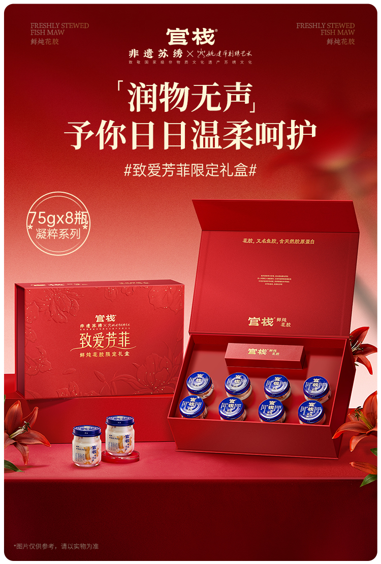 【私信门店顾问享折扣】非遗苏绣芳菲礼盒-官栈鲜炖花胶·凝粹系列 北极圈洁净海域 深海天然胶原蛋白(75g*8瓶)