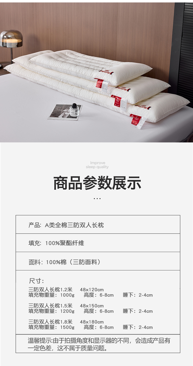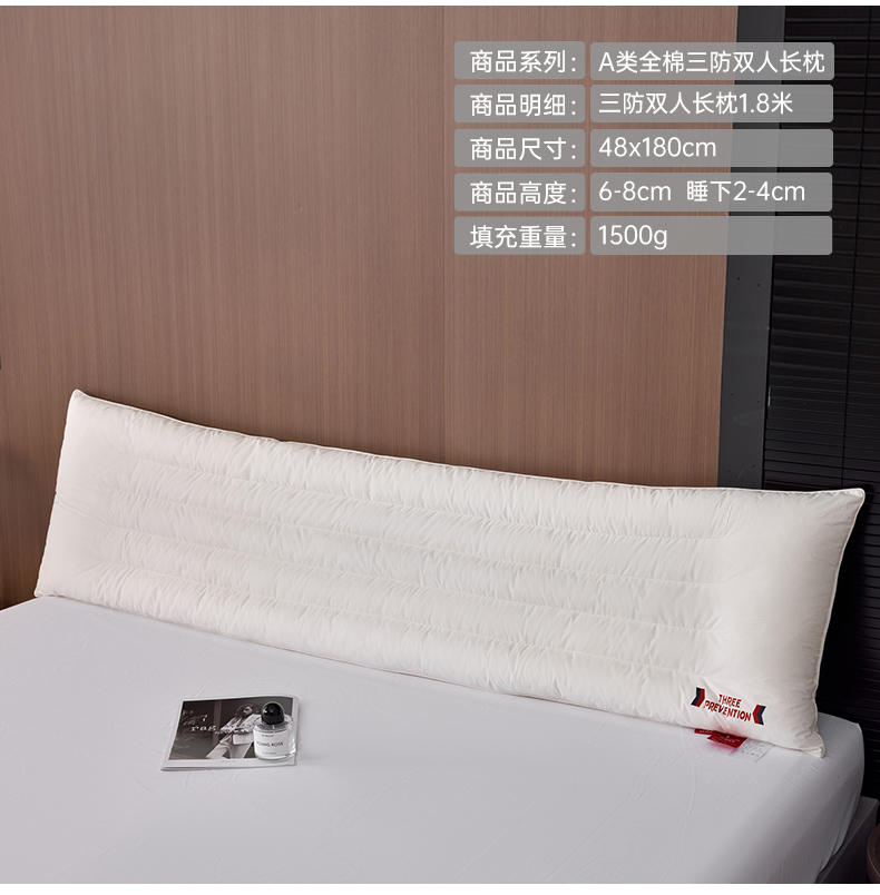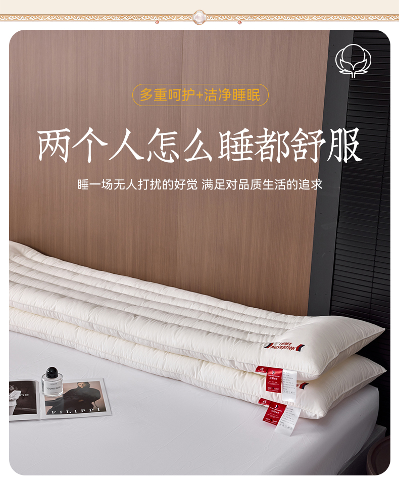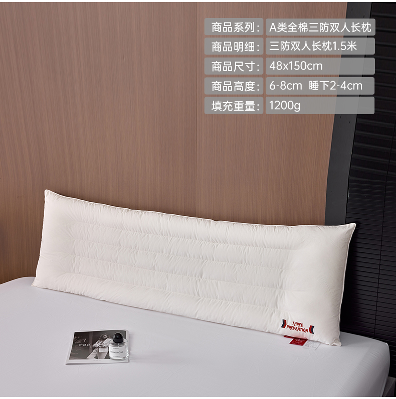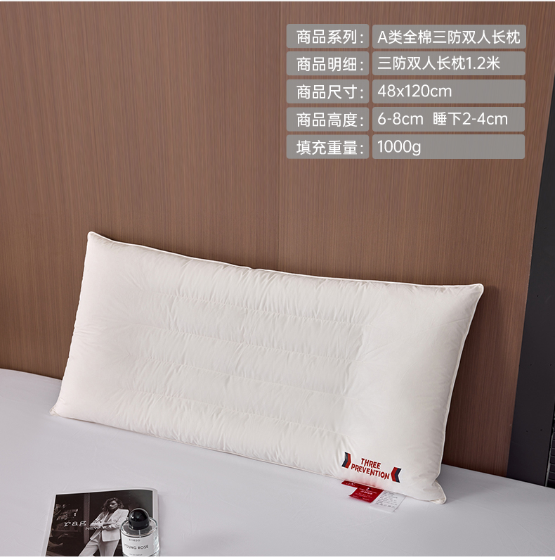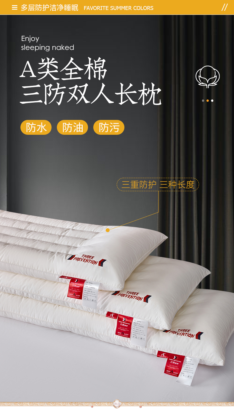 自然醒A类全棉三防双人长枕头助睡眠情侣长款一体长条枕防水油污枕芯护颈椎双层纱长枕套 XK