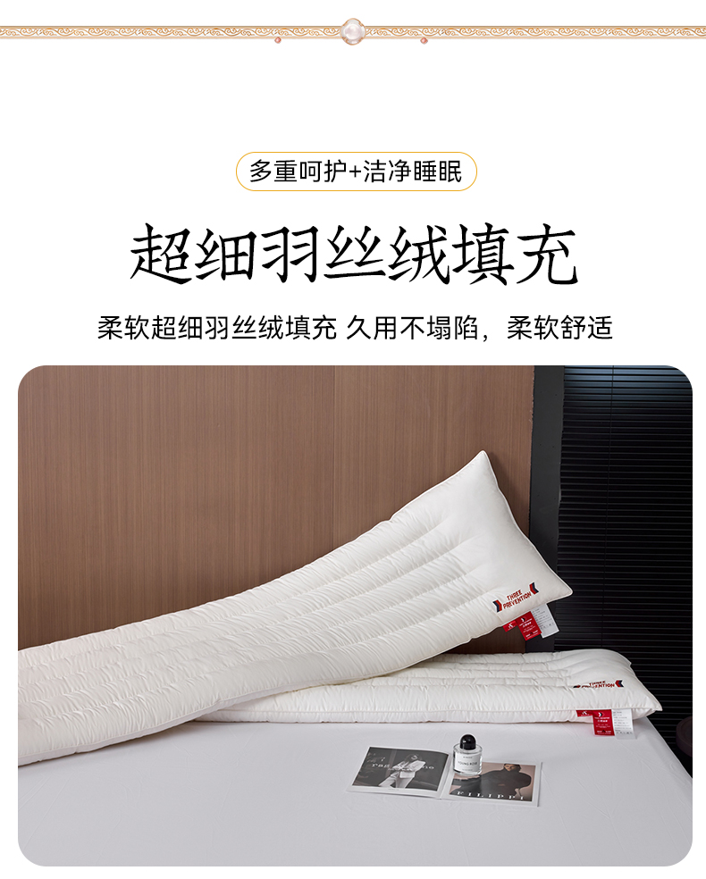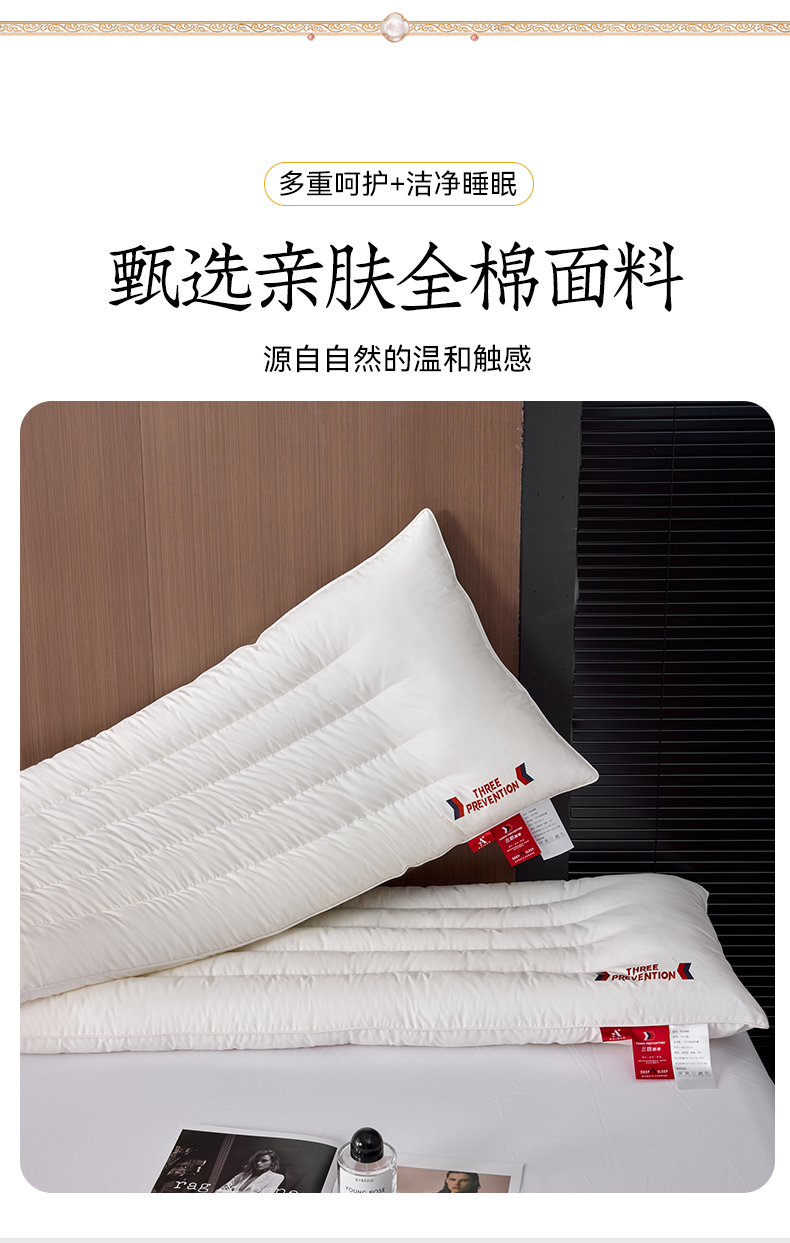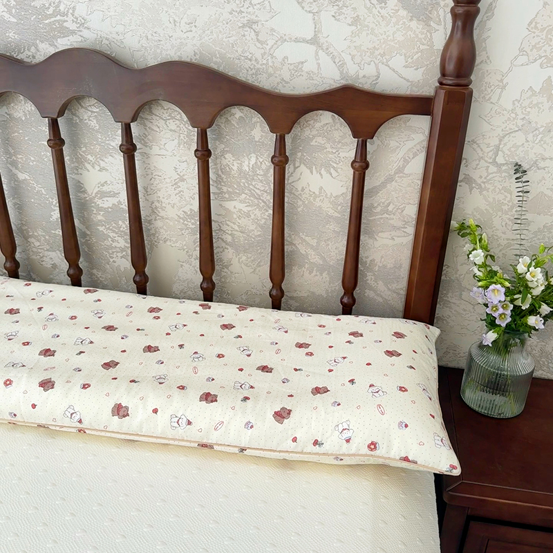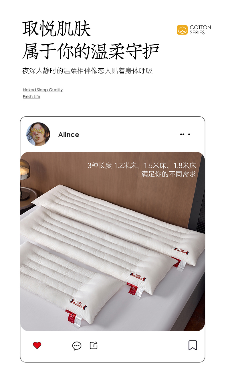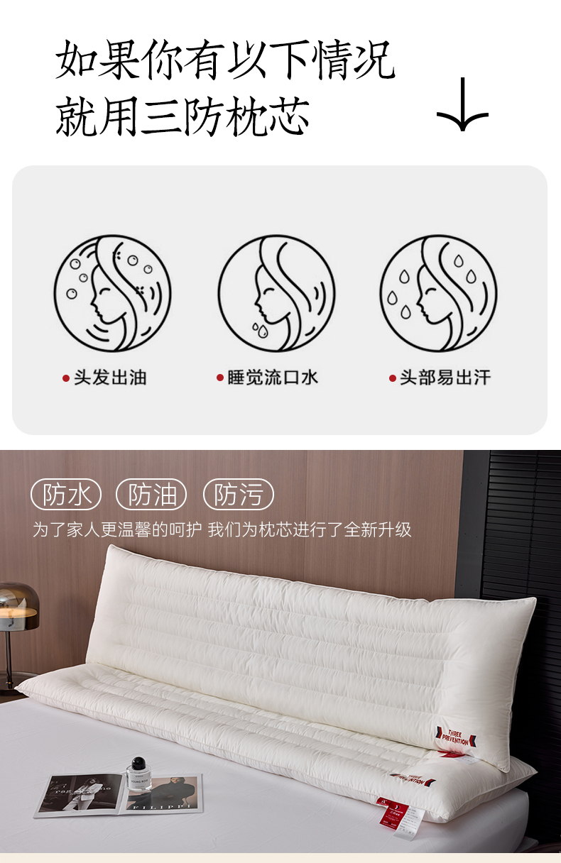 自然醒A类全棉三防双人长枕头助睡眠情侣长款一体长条枕防水油污枕芯护颈椎双层纱长枕套 XK