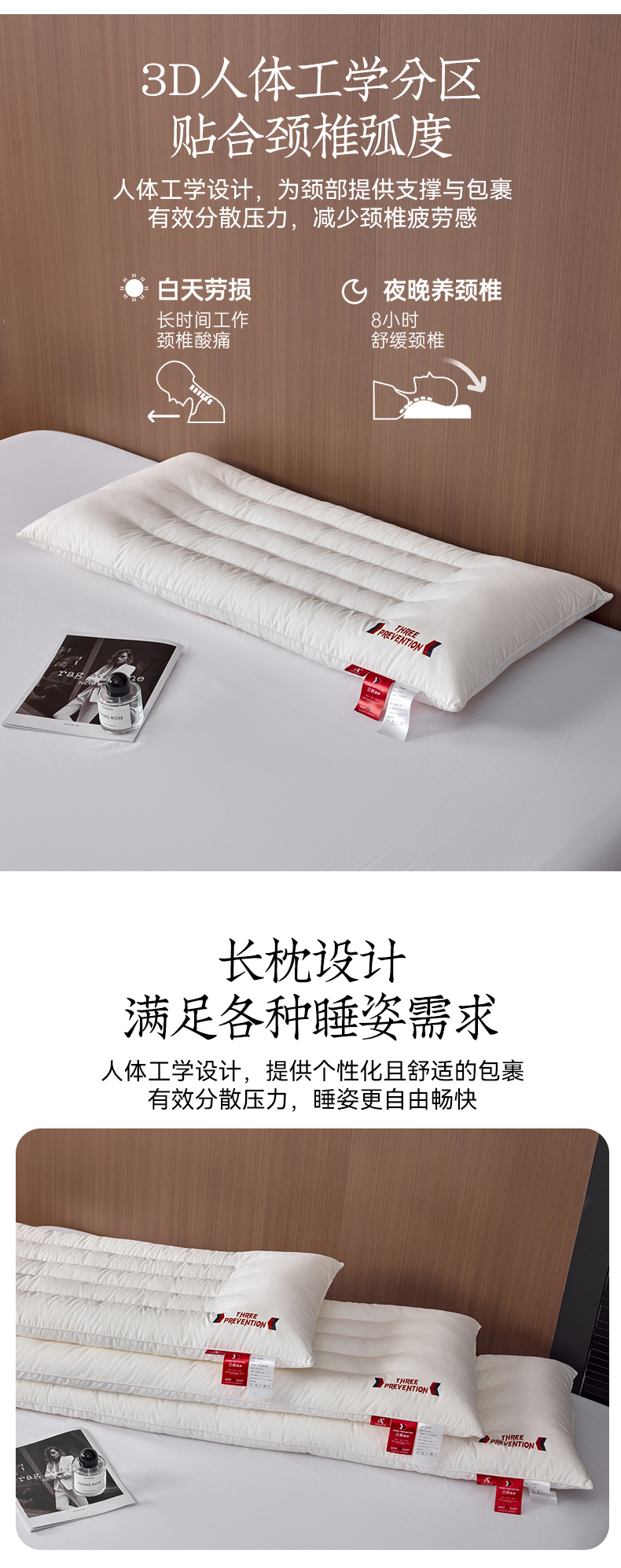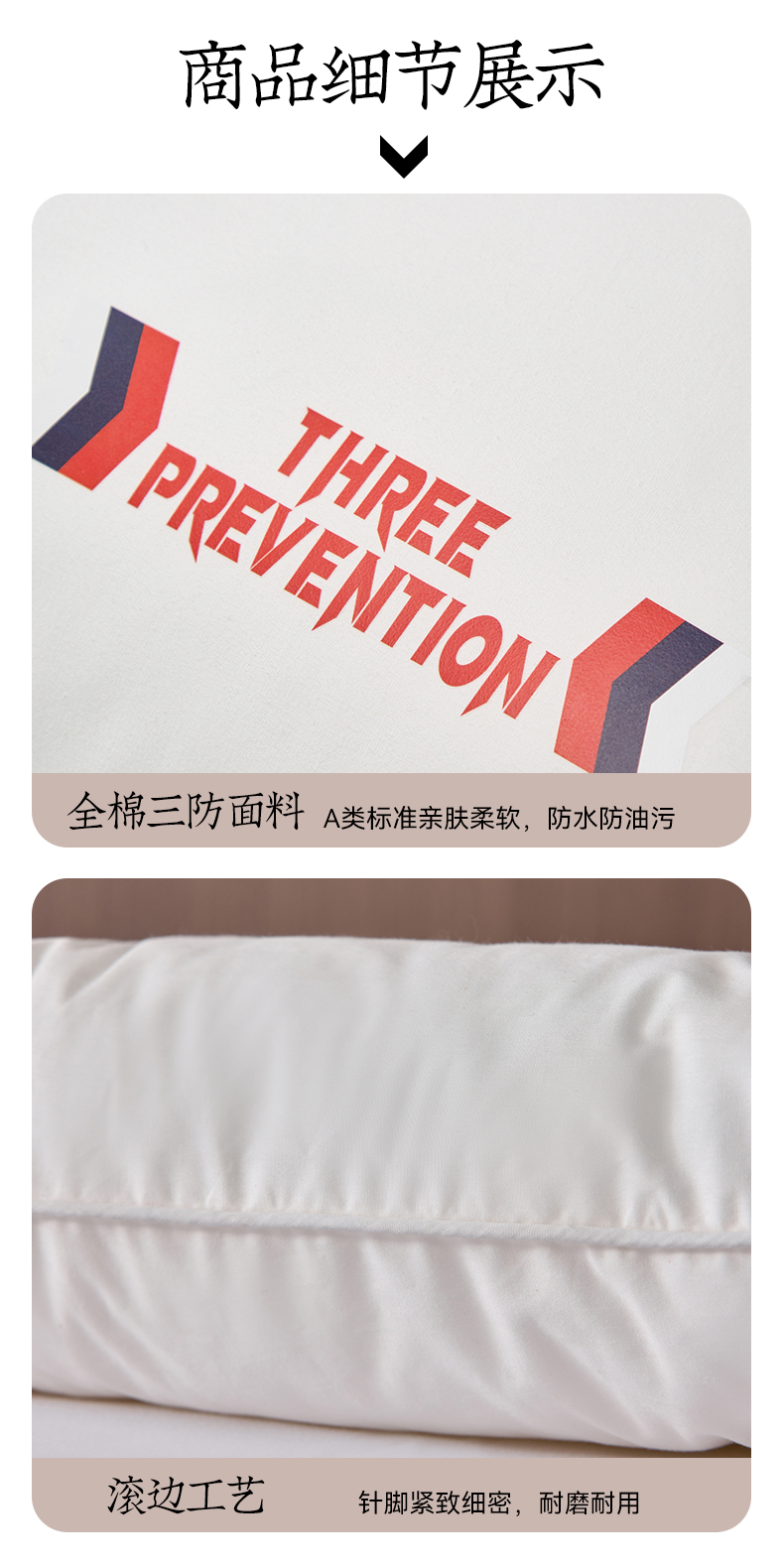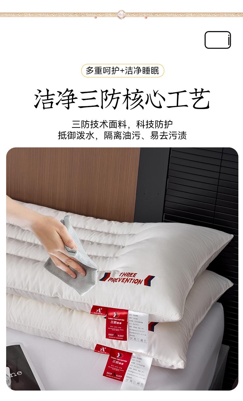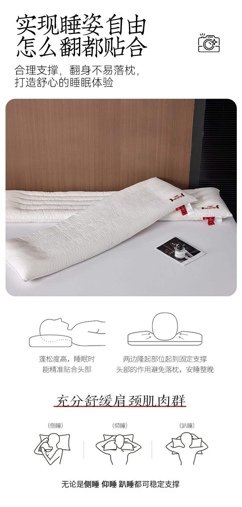 自然醒A类全棉三防双人长枕头助睡眠情侣长款一体长条枕防水油污枕芯护颈椎双层纱长枕套 XK