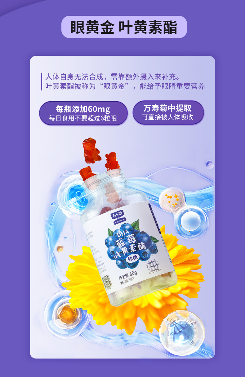 【英贝健 山楂鸡内金软糖/叶黄素酯软糖】富含DHA软糖用眼过度的都安排上 不爱吃饭的宝宝救星 富含维生素 孩子越吃胃口越好