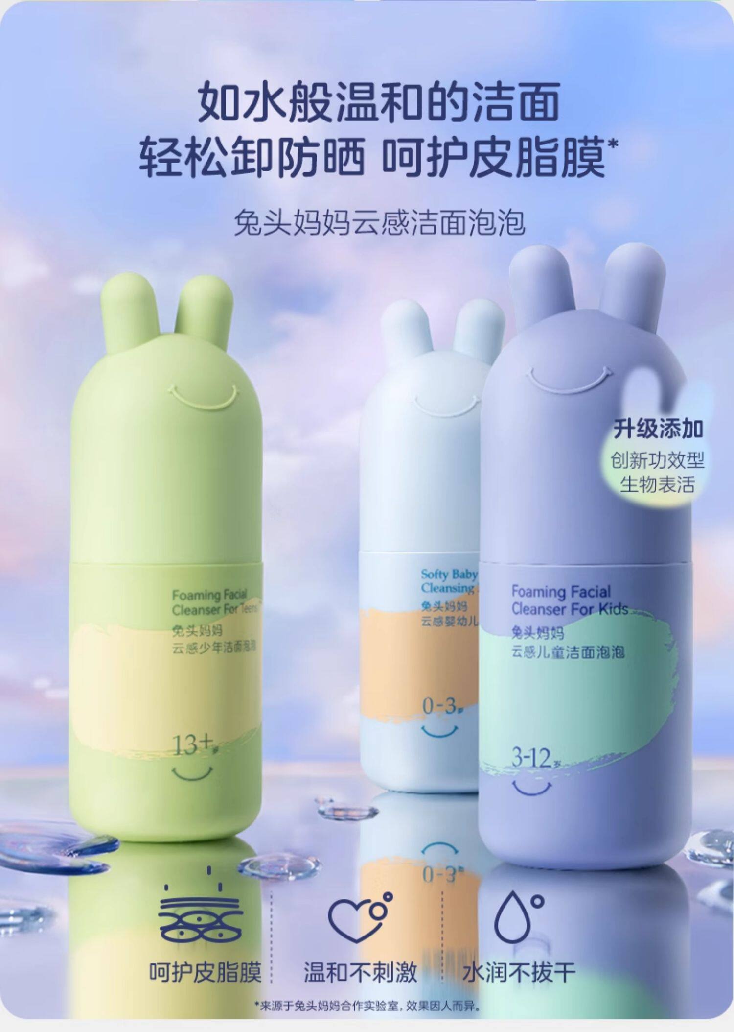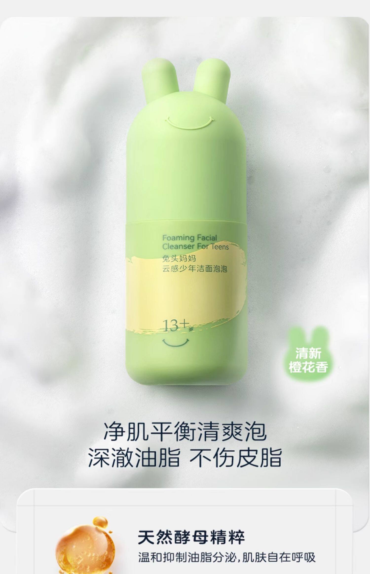 兔头妈妈云感少年洁面泡泡13+适用90ml