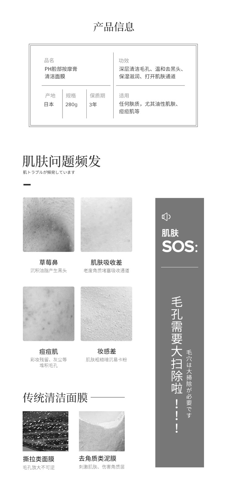 日本美容院专用脸部亮肤ph按摩膏深层清洁大粉罐(285002)