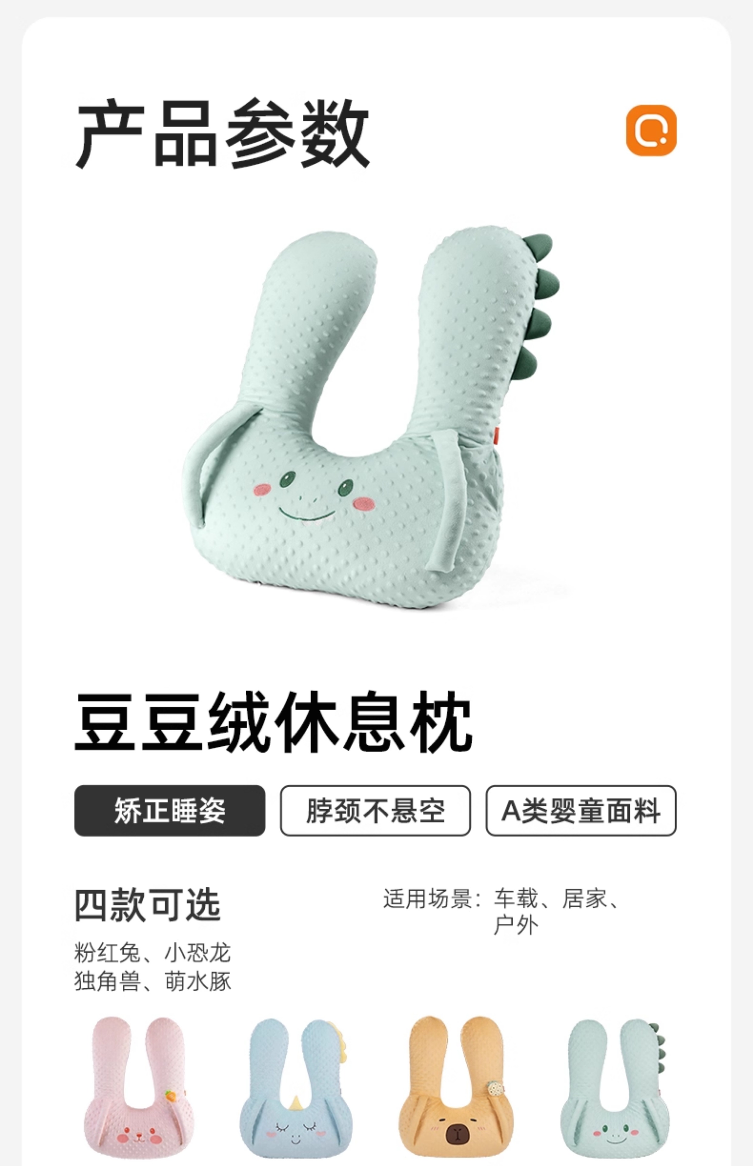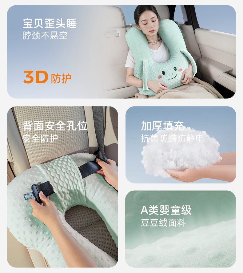 乔氏 儿童豆豆绒休息头枕车载睡觉神器