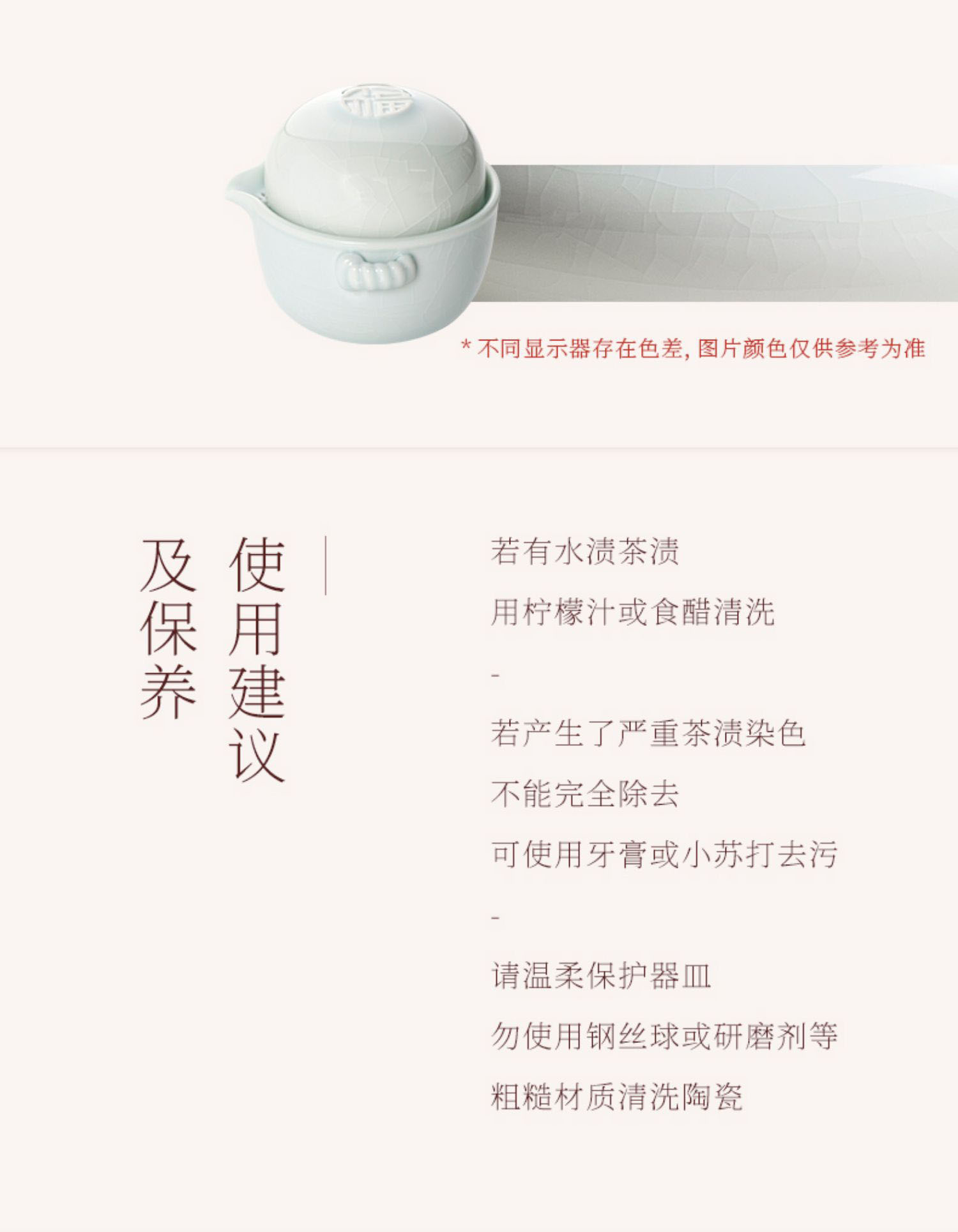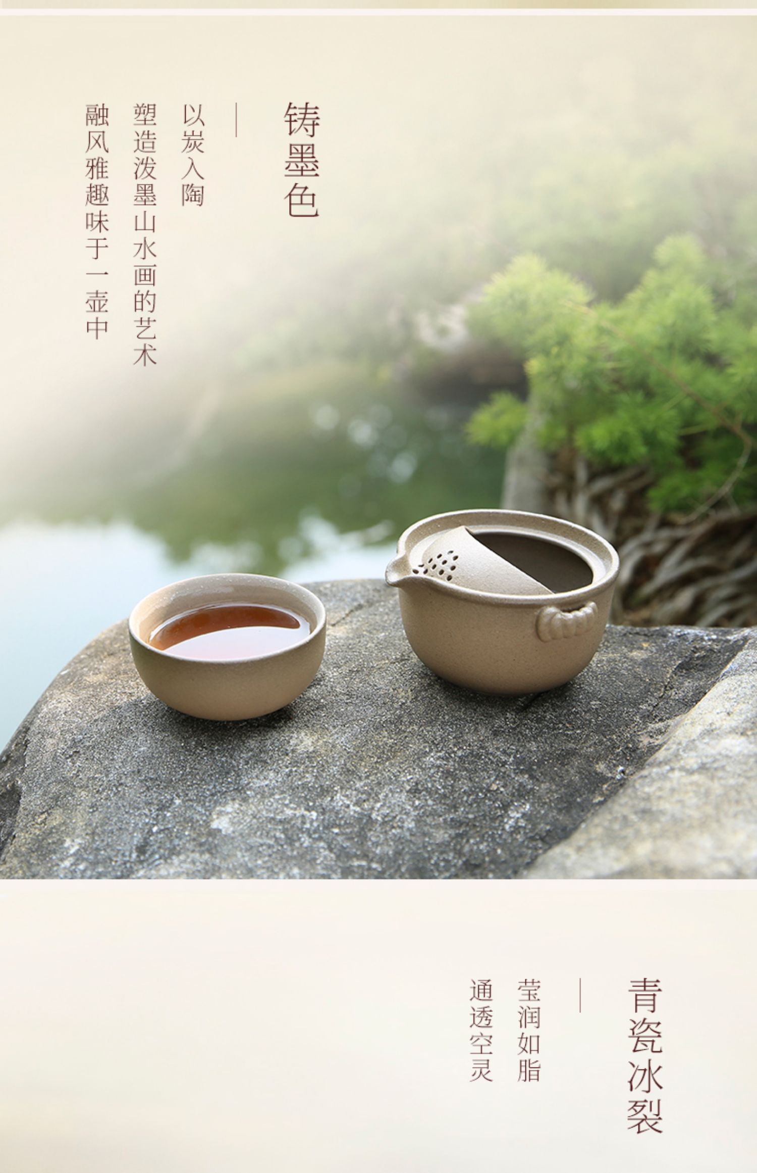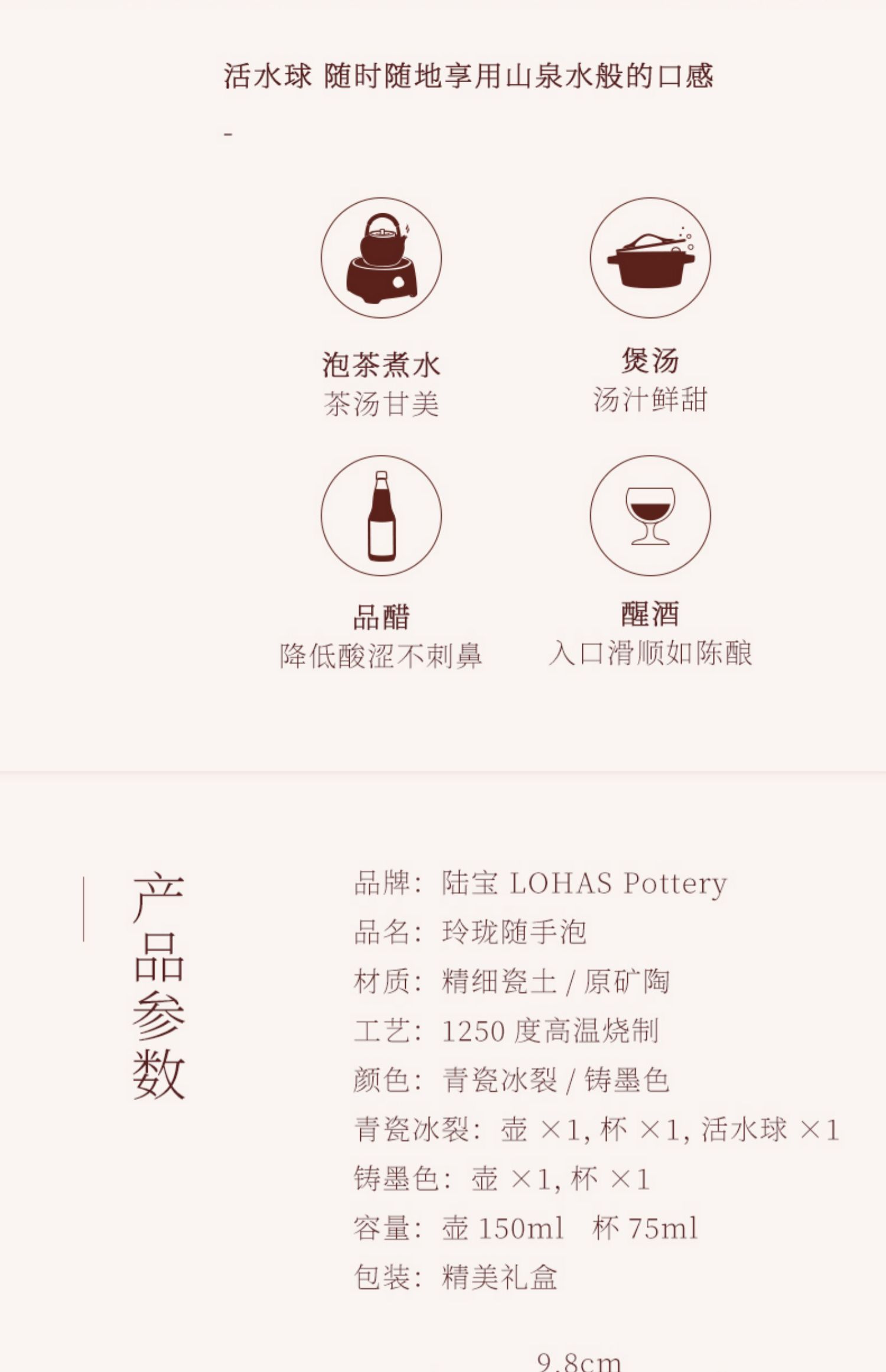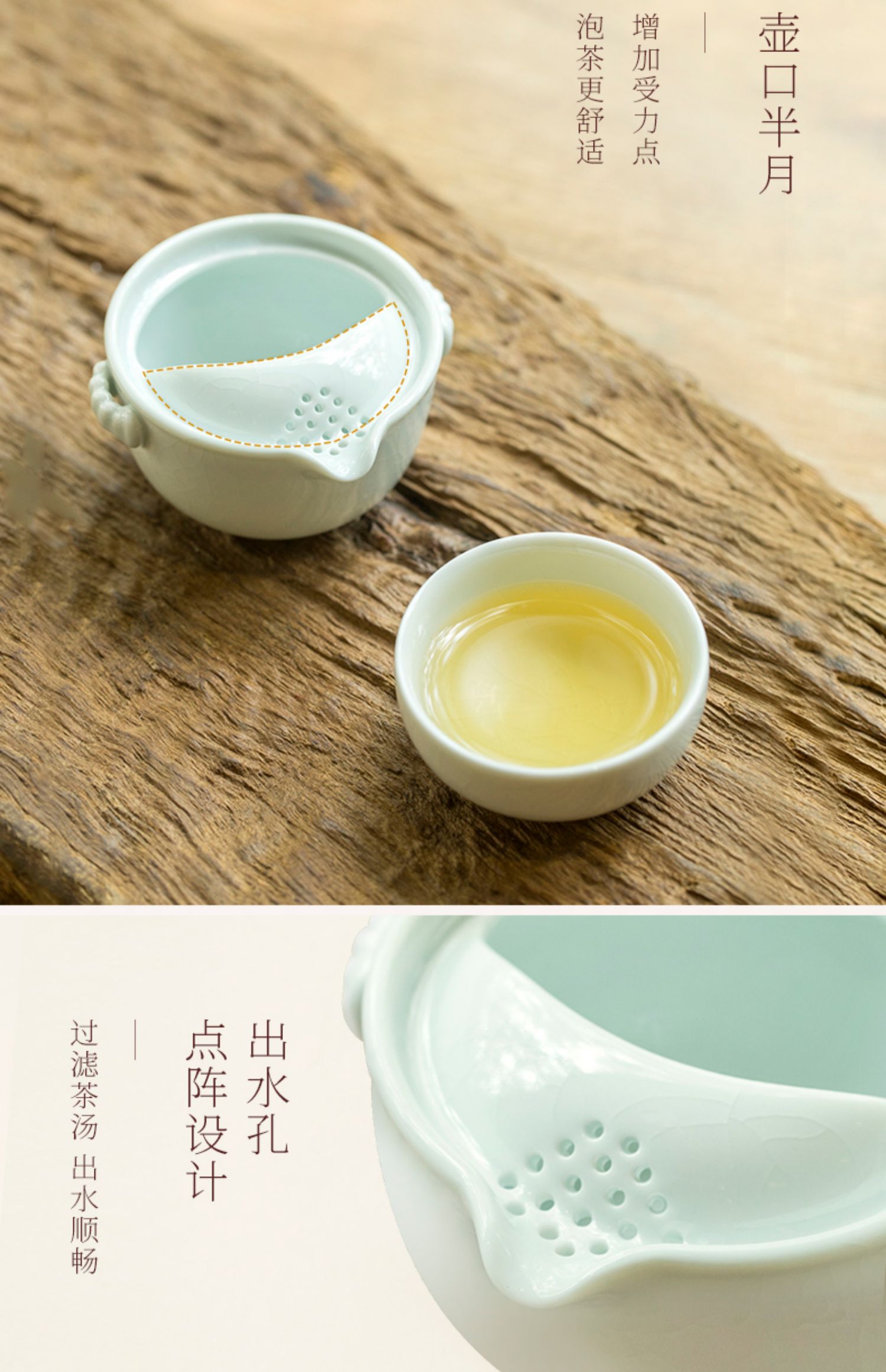 陆宝陶瓷 玲珑随手泡一壶一杯一人快客杯茶具青瓷冰裂色 礼盒装