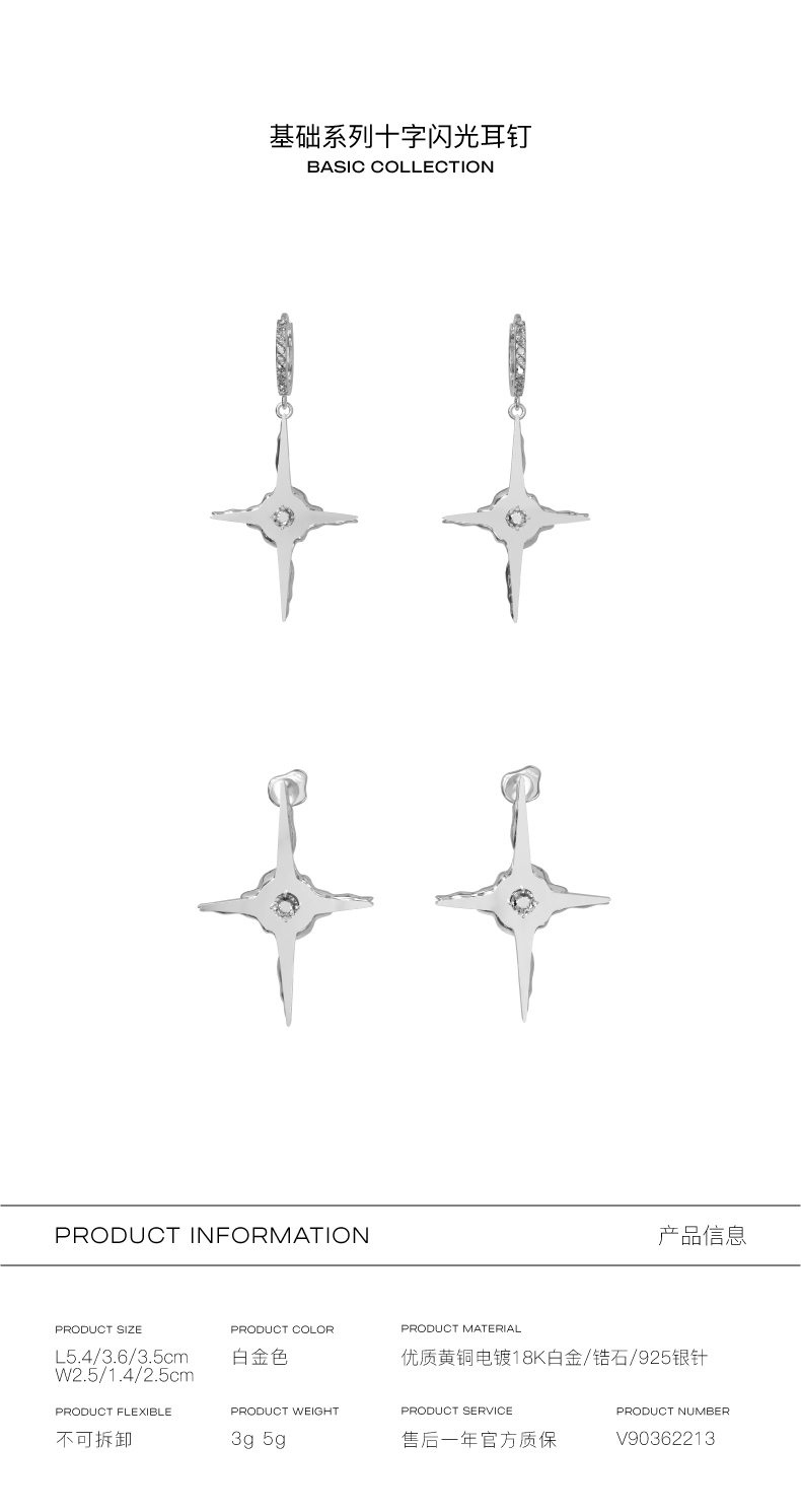 KVK十字架耳环高级感镶钻耳钉轻奢小众设计感简约耳坠耳饰品女潮