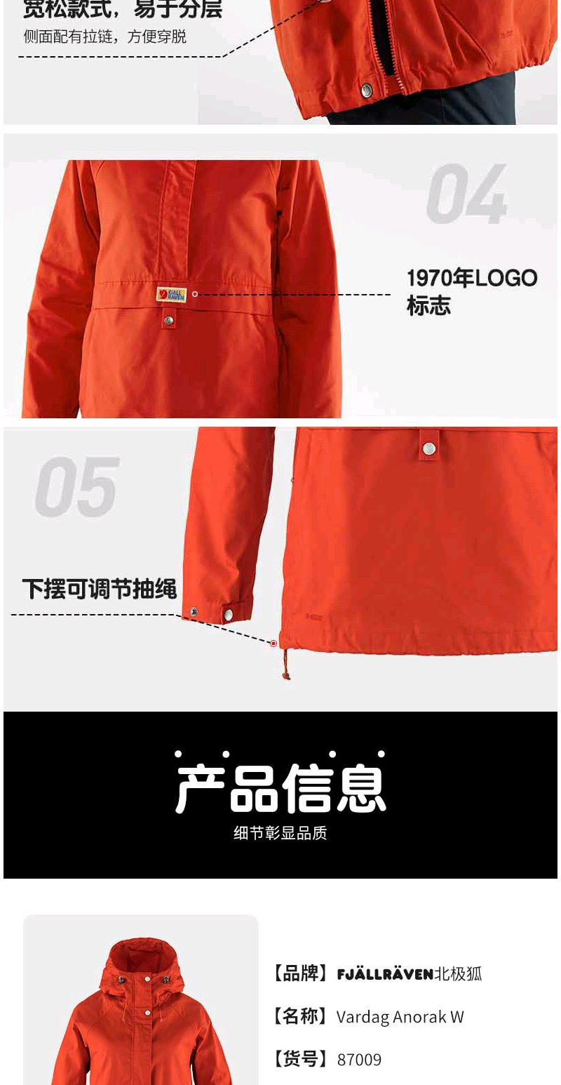 北极狐2024春季新款女士户外徒步套头连帽高领休闲外套夹克 87094