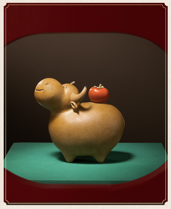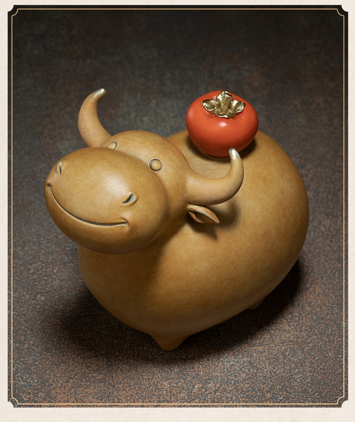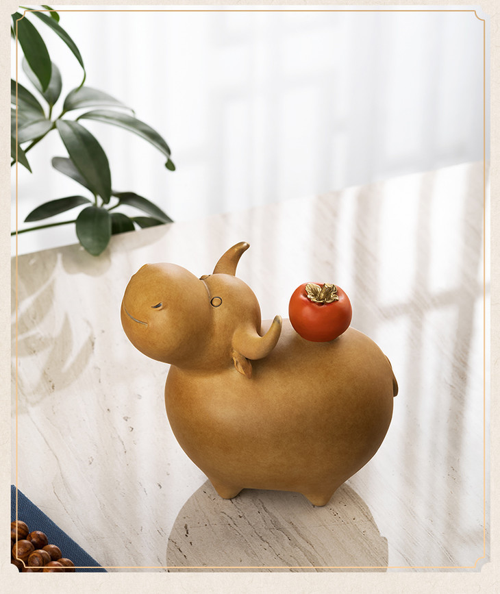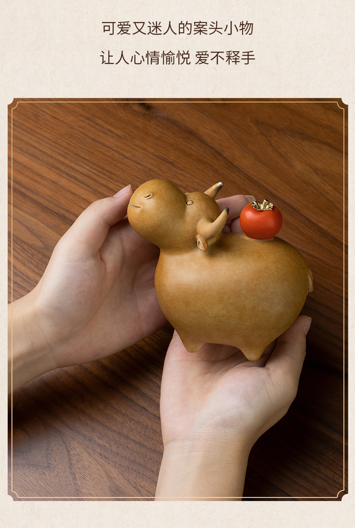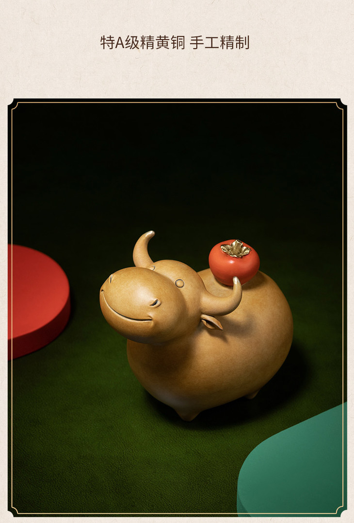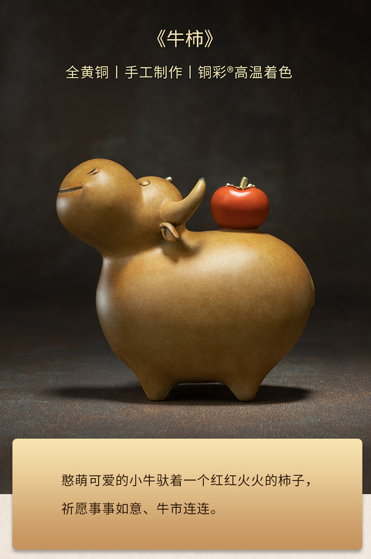 铜师傅 全铜摆件《牛柿》家居饰品 铜工艺品 礼品 摆件
