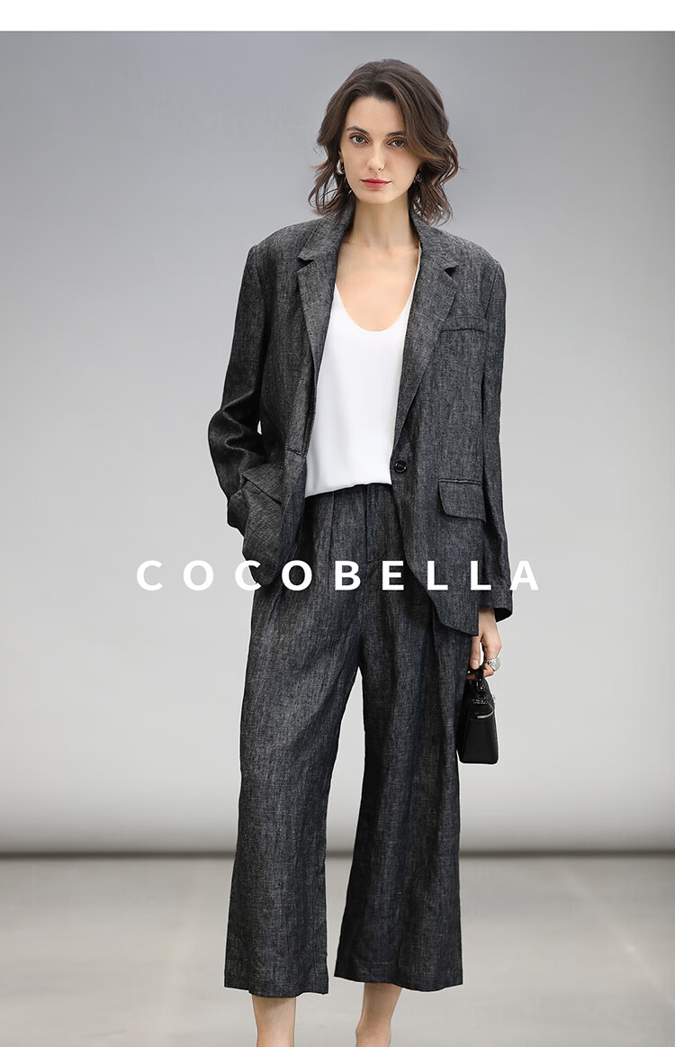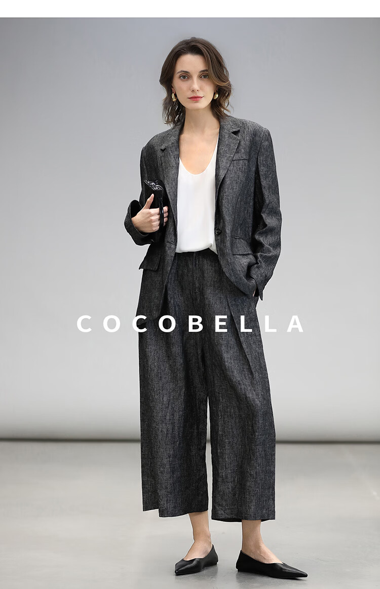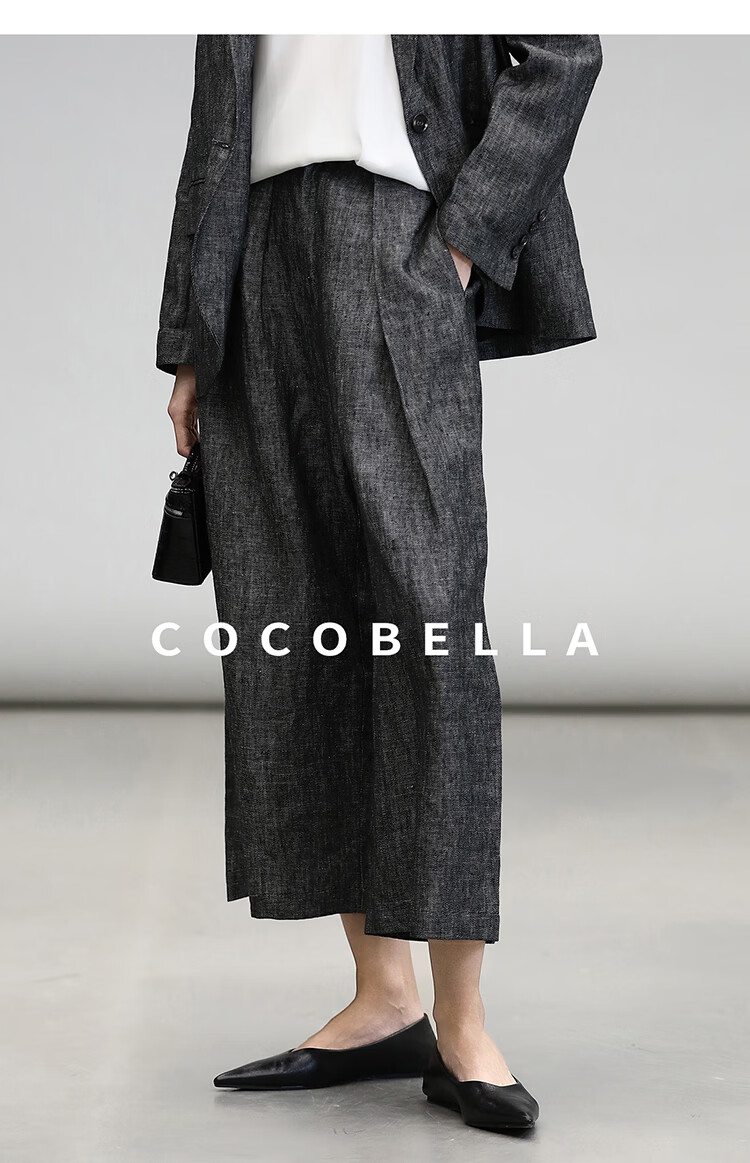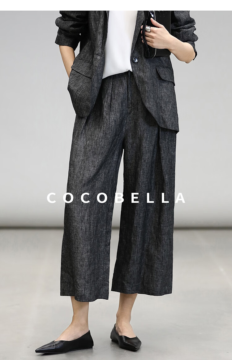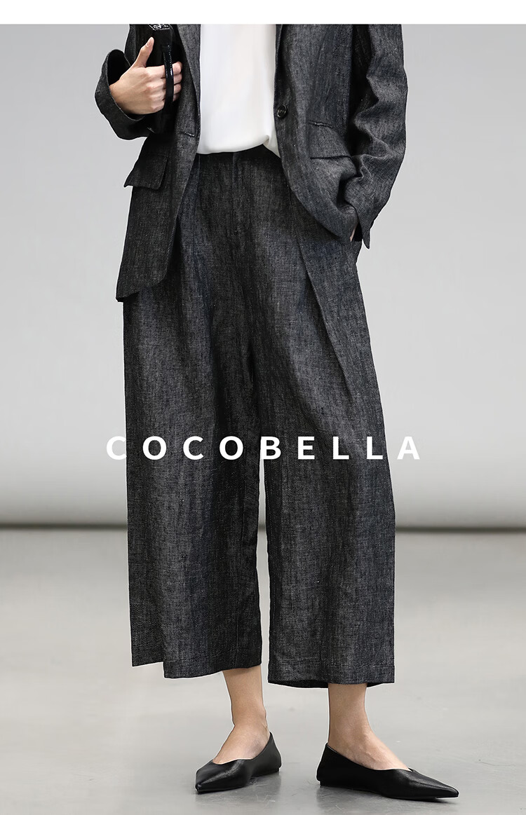 COCOBELLA[100%亚麻]老钱风奢感通勤西裤九分阔腿女休闲裤PA3067