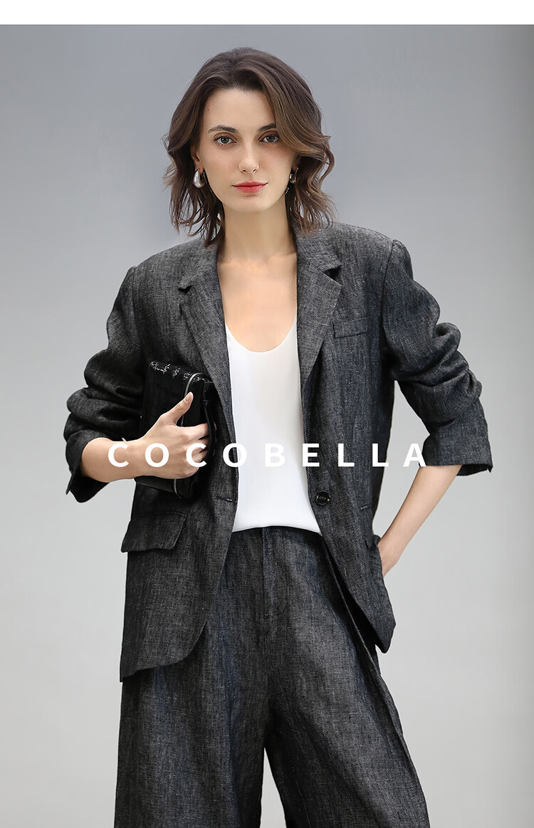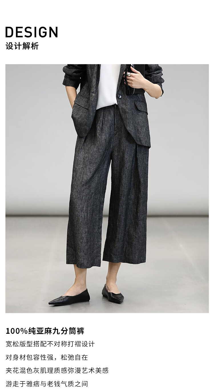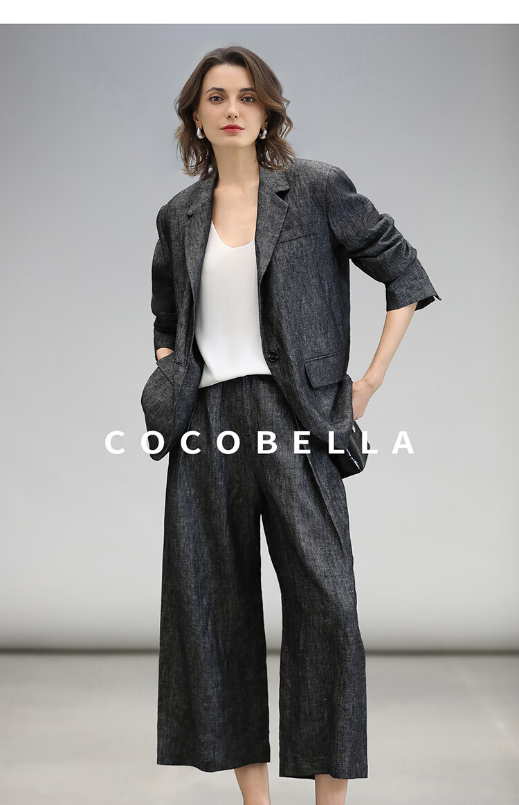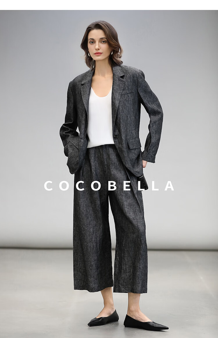 COCOBELLA[100%亚麻]老钱风奢感通勤西裤九分阔腿女休闲裤PA3067