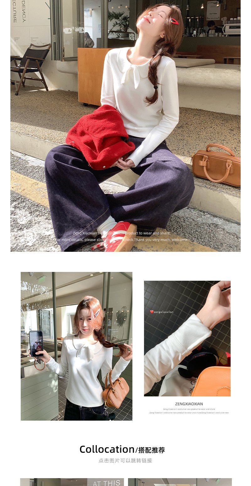 <曾小咸推荐>2.24现货秒杀 !微信超特价!韩系蝴蝶结娃娃领长袖t恤 日常139.99 立减80 秒杀59.99!!