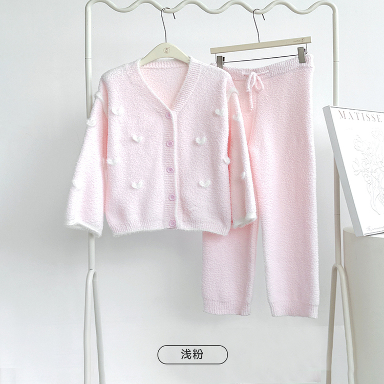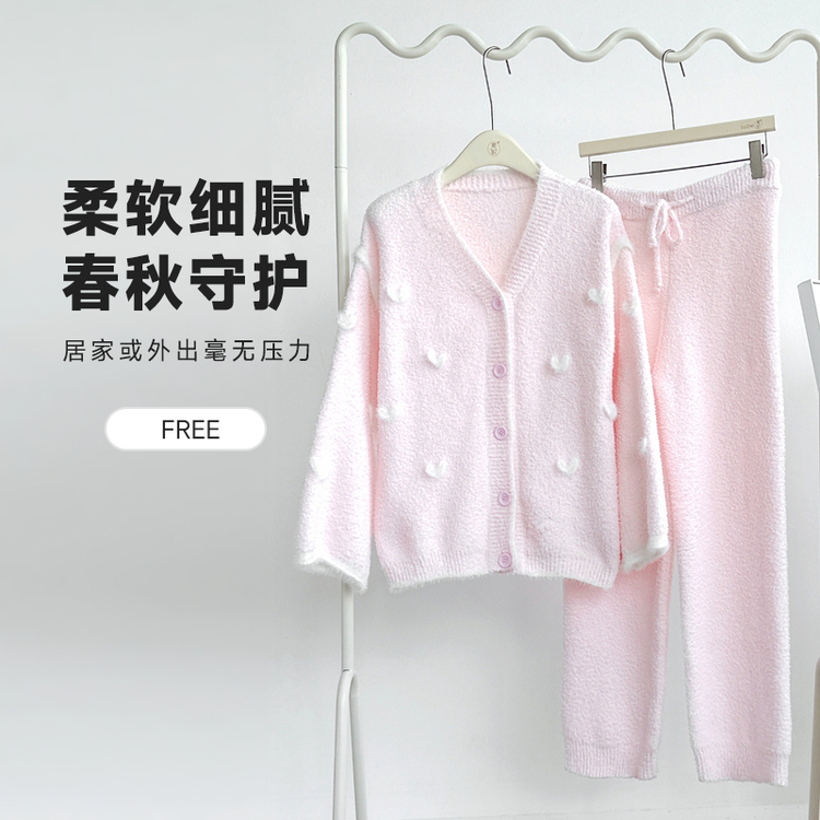 都市丽人睡衣半边绒睡衣女士家居服长袖长裤半边绒套装LHH1S3