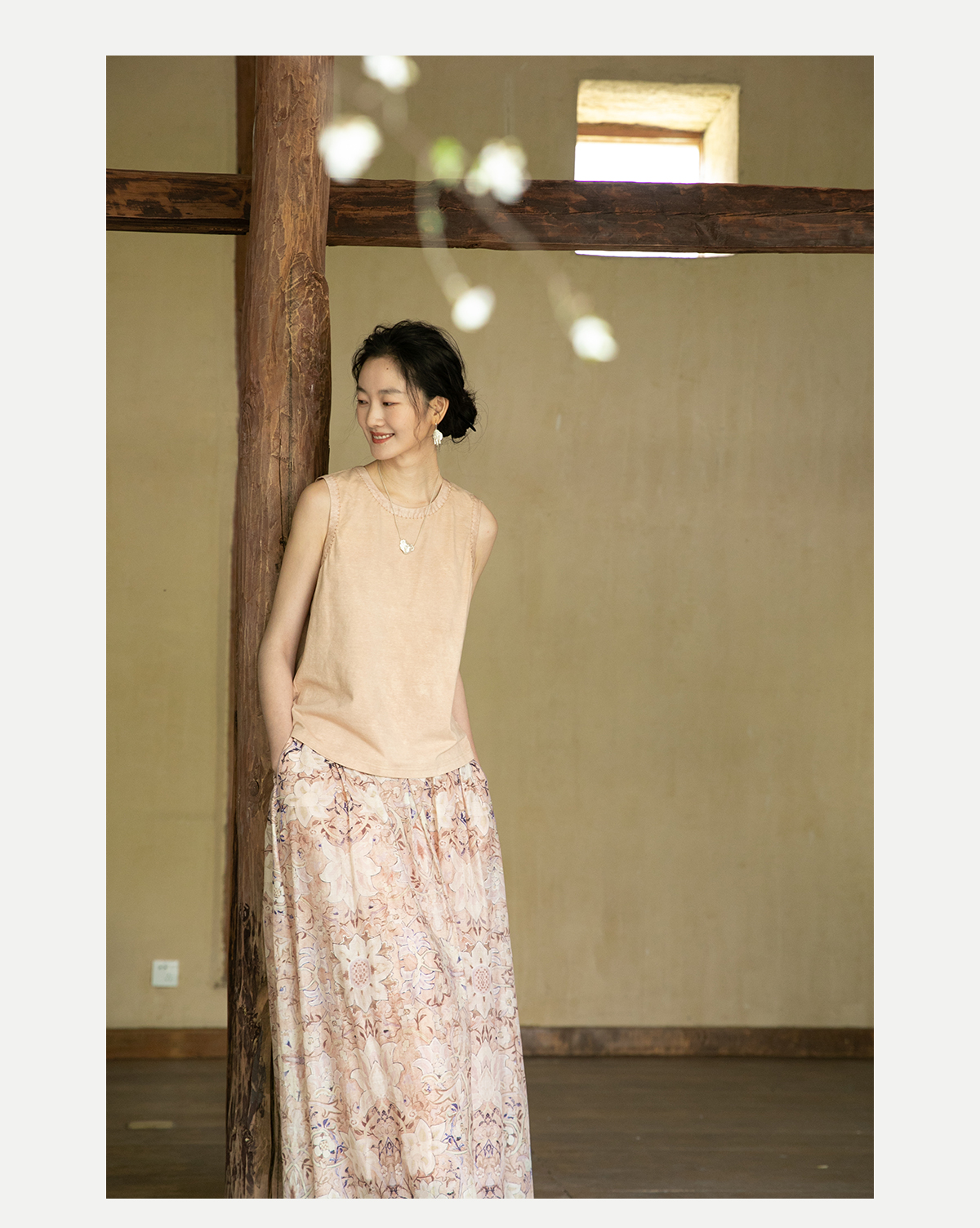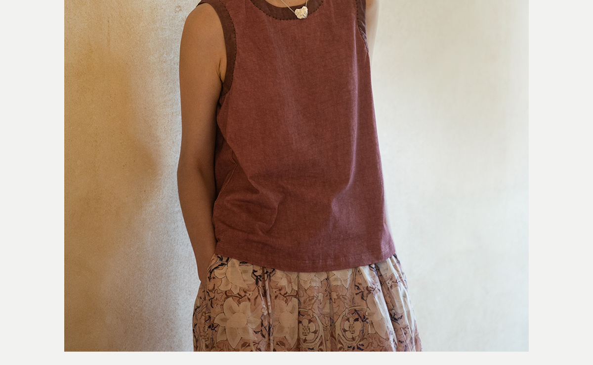 牧衣游原创汉麻棉炒色无袖背心女夏新款舒适百搭休闲无袖T恤 前茶