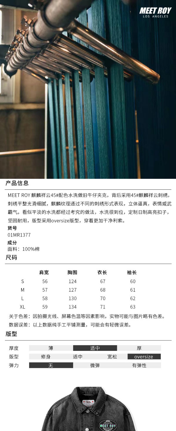 MEET.ROY麒麟祥云系列45#刺绣 水洗做旧牛仔夹克 oversize版型01MR1377