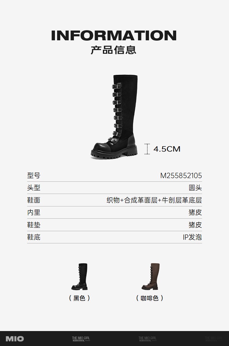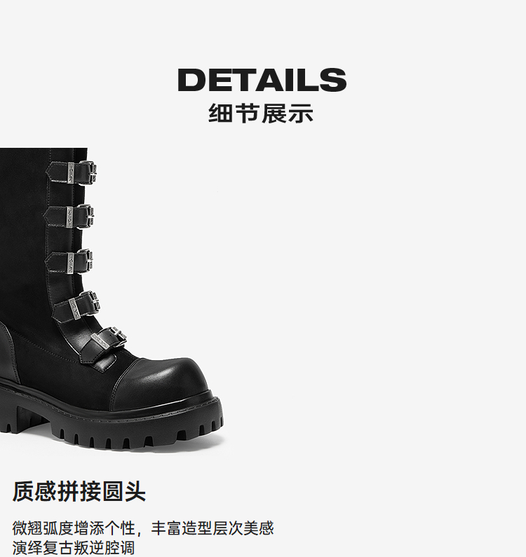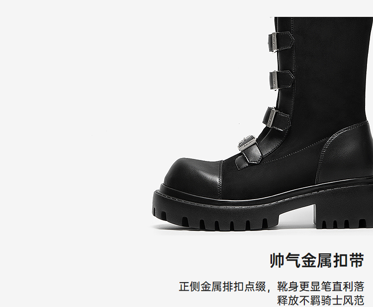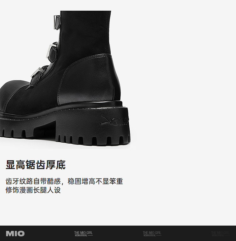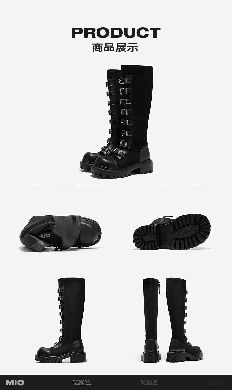 MIO米奥机车骑士靴女款西部牛仔皮扣带冬季新款高筒朋克长靴M255852105