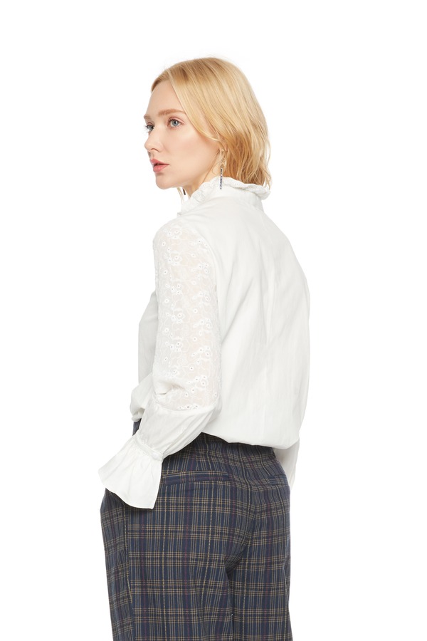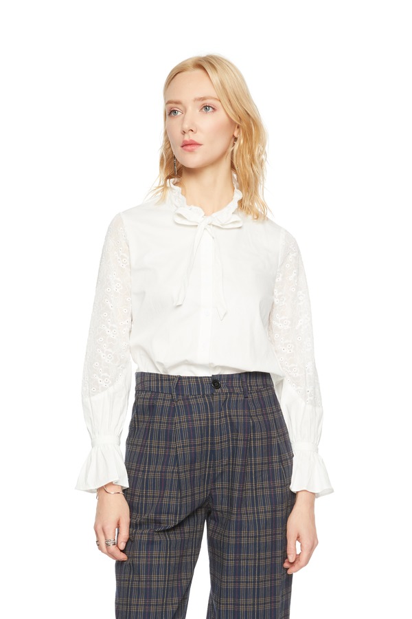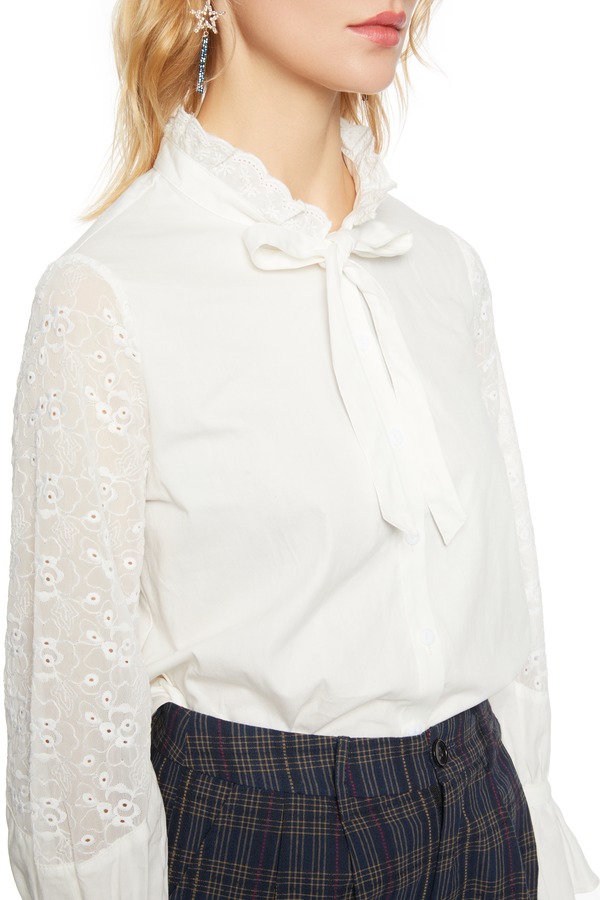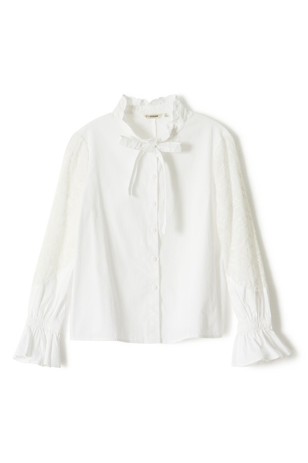 TT.COLOR 花边领系带白色上衣 5023