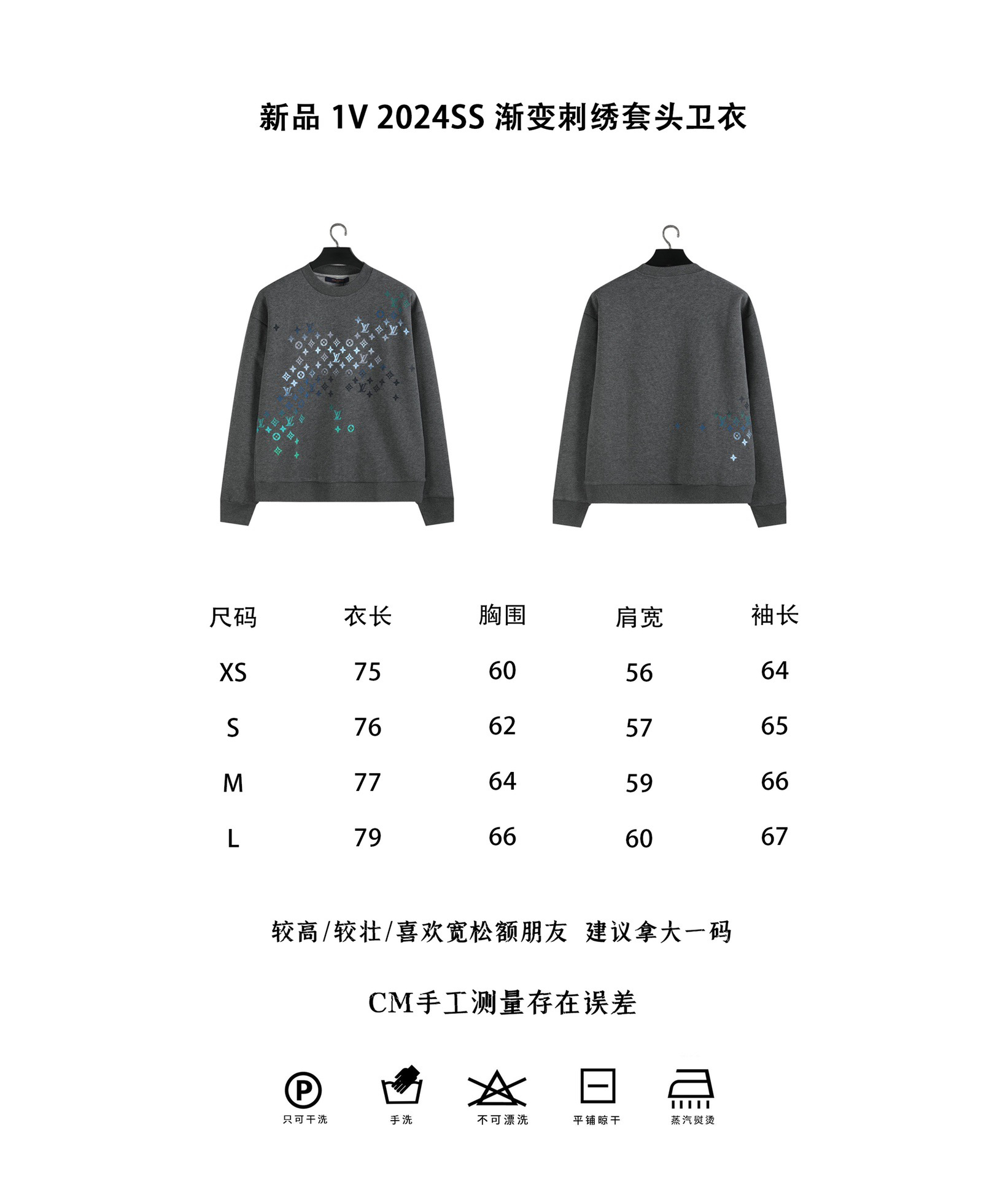 新品 1V 2024SS 渐变刺绣套头卫衣