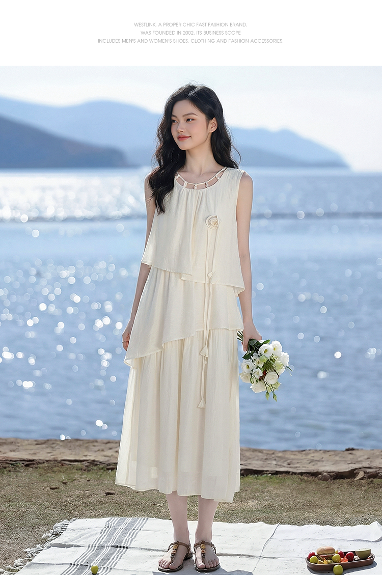 西遇度假风无袖背心裙女2026春季新款设计感小众不规则气质连衣裙E0060180
