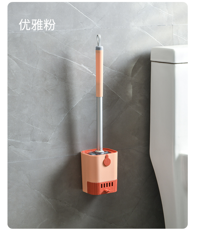 「高颜值!双刷款」可挂墙式马桶刷 无死角洗厕所卫生间家用清洁工具长柄刷带沥水接盘套装