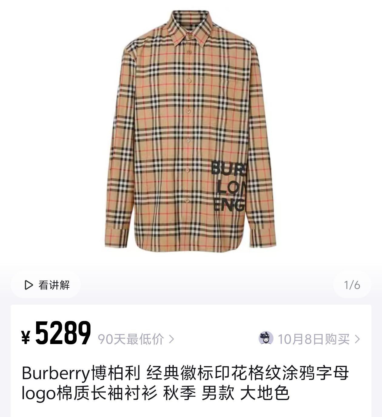 BURBERRY 字母胶印长袖衬衫