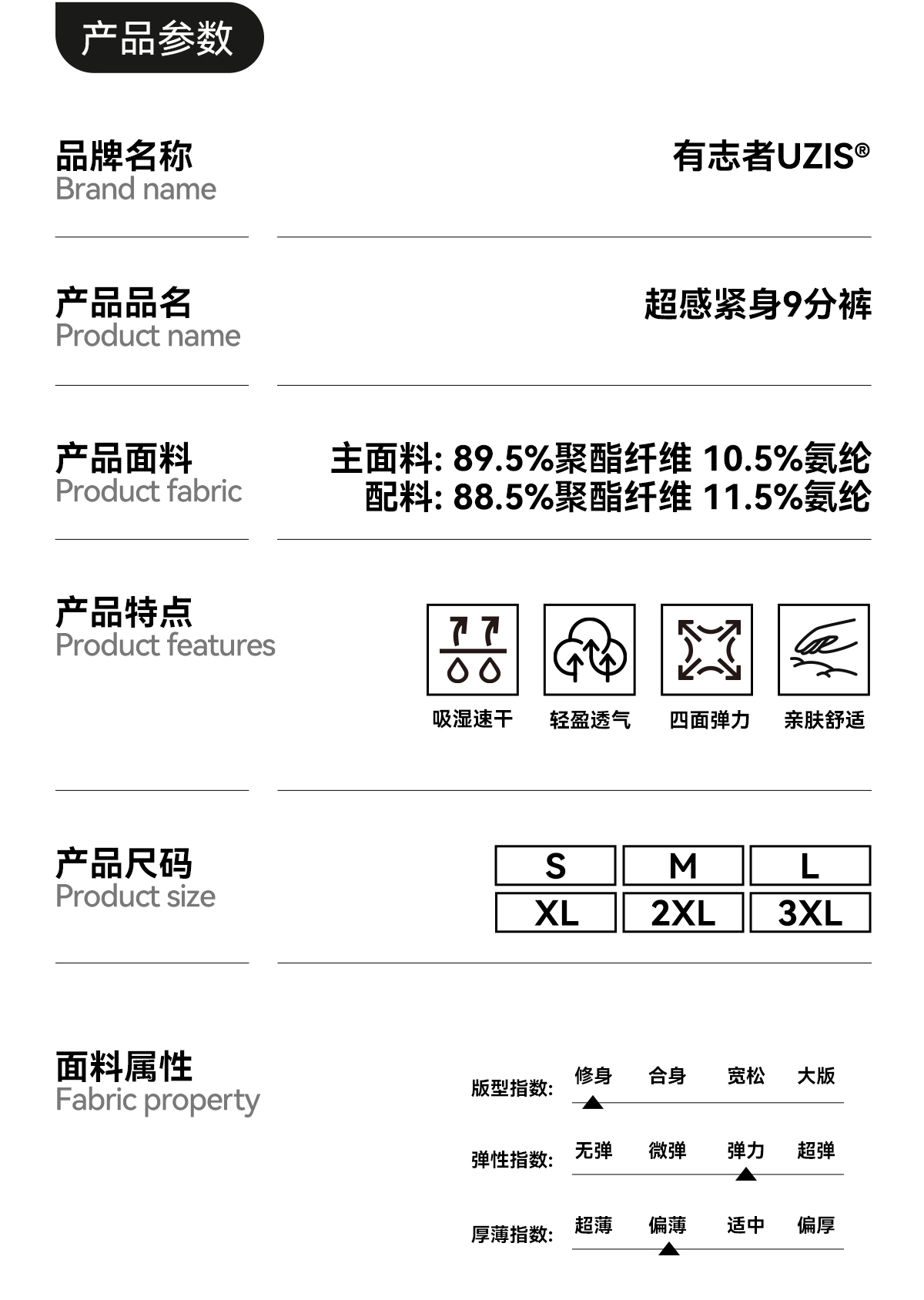 有志者UZIS超感紧身九分裤男篮球运动训练高弹透气速干压缩健身裤