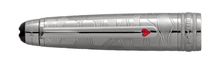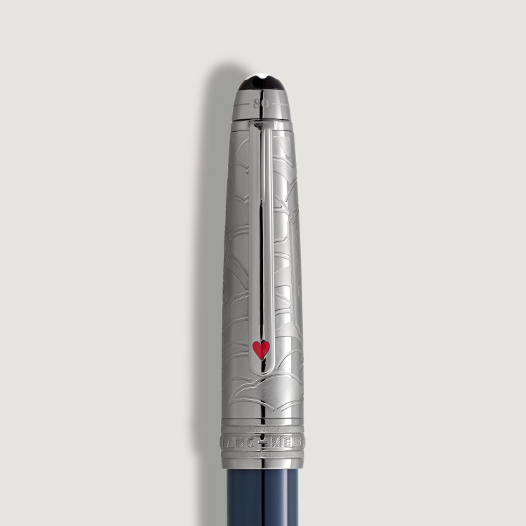 笔帽的设计灵感源自压力阀和火车头喷出的滚滚浓烟,而笔夹则采用覆以红色漆面的红桃花色,象征着菲利斯·福格与奥达公主的情谊。此外,纸牌花色还象征着福格在短短80天内完成旅程的无畏赌注笔帽顶端饰有旅程时间表压花图案,其中包括从横滨到伦敦的36天旅程,最终以总计80天的环球旅行圆满收官。手工精制18K金笔嘴刻有“14/11”和“21/12”字样,令这款书写工具更显不凡。这些数字代表福格先生于11月14日从横滨启程,以及在12月21日之前返回伦敦俱乐部以赢得赌注的大胆筹谋。它还饰有热气球图案,灵感源自儒勒·凡尔纳的首部冒险小说。