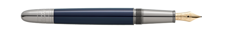 大班系列《八十天环游地球》的灵感来自儒勒·凡尔纳的著名冒险小说。贵金属系列双色经典款墨水笔采用抛光深蓝色名贵漆面和金属笔帽,描绘福格先生和仆人万事通的传奇之旅。在从横滨经美国返回伦敦的最后一段旅程中,两人乘坐火车横跨辽阔的美洲大陆。敬请细赏精致细节--笔帽以激光优雅雕刻一列火车,笔杆尾端的安全链图案生动再现了万事通将车厢与火车头分离以拯救遭受苏族人袭击的乘务员的关键时刻。