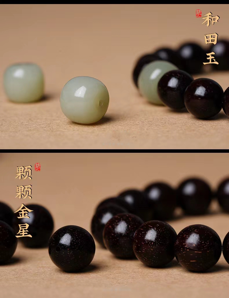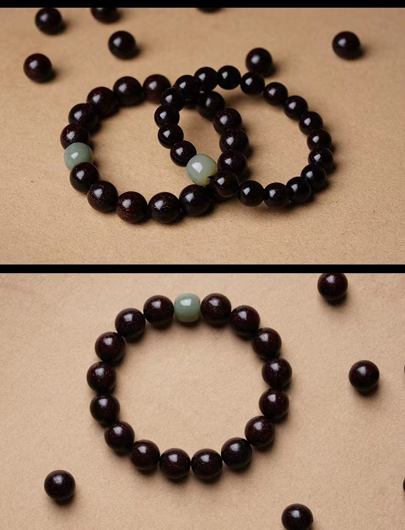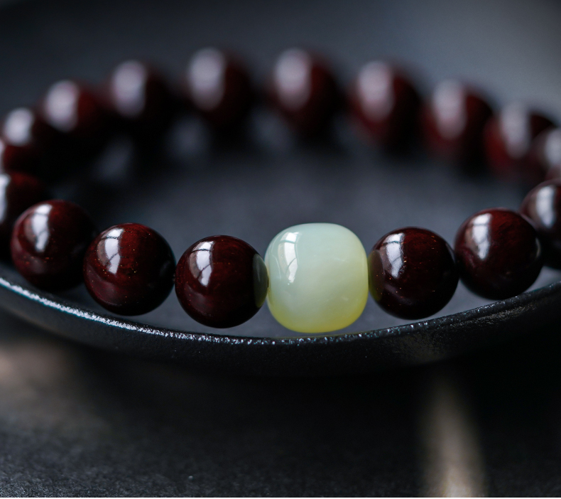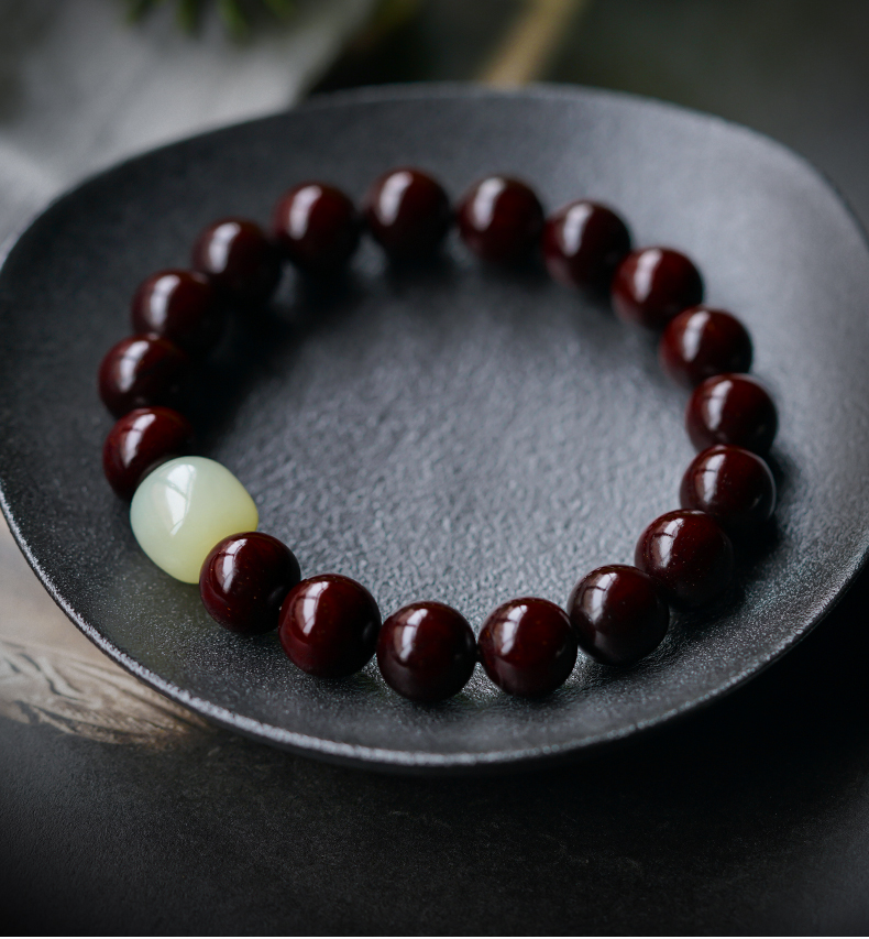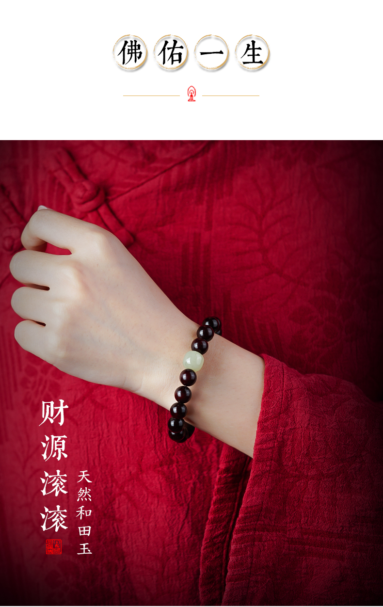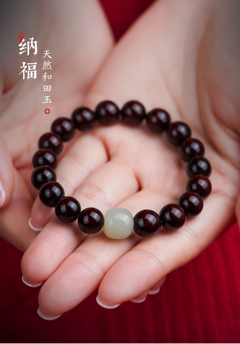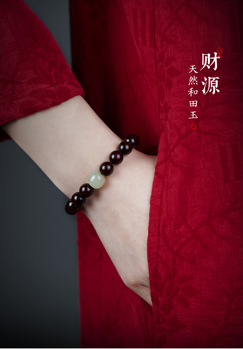 【玉质细腻 饱满润泽】小叶紫檀和田玉 水润通透 自戴送礼 吉祥好运