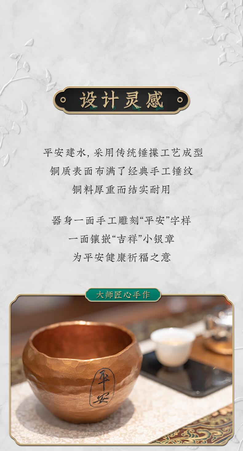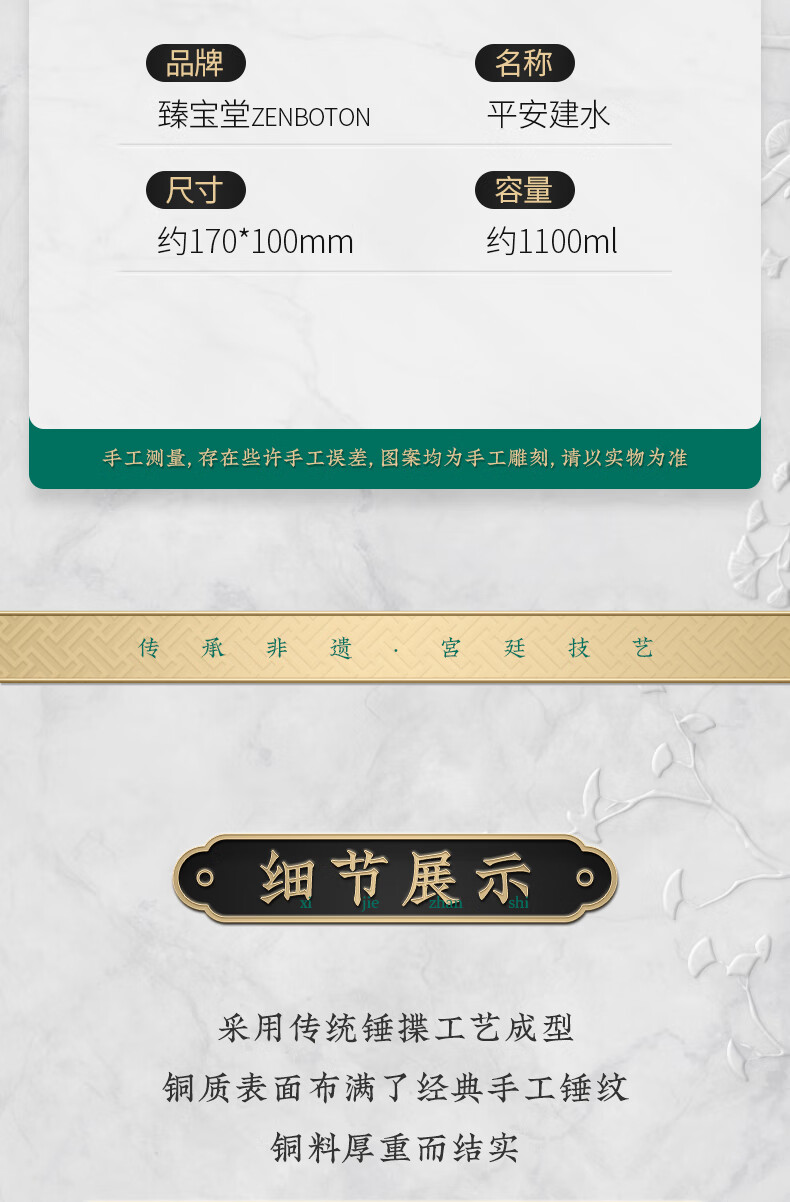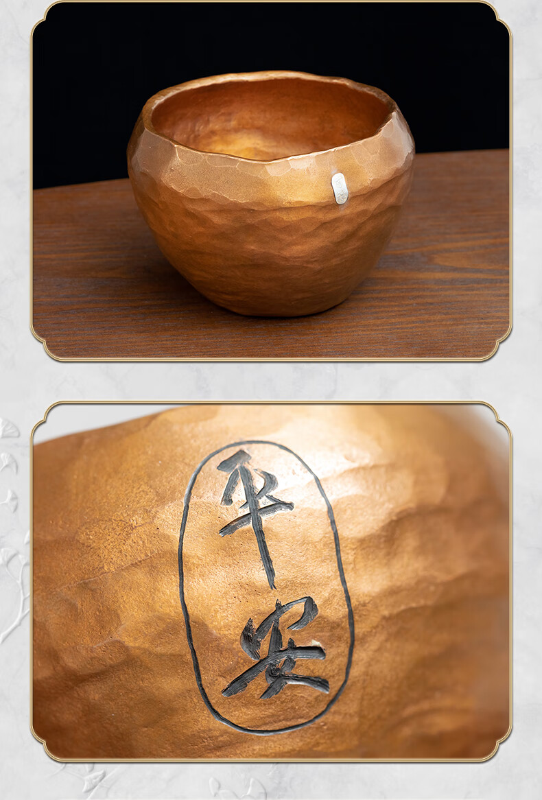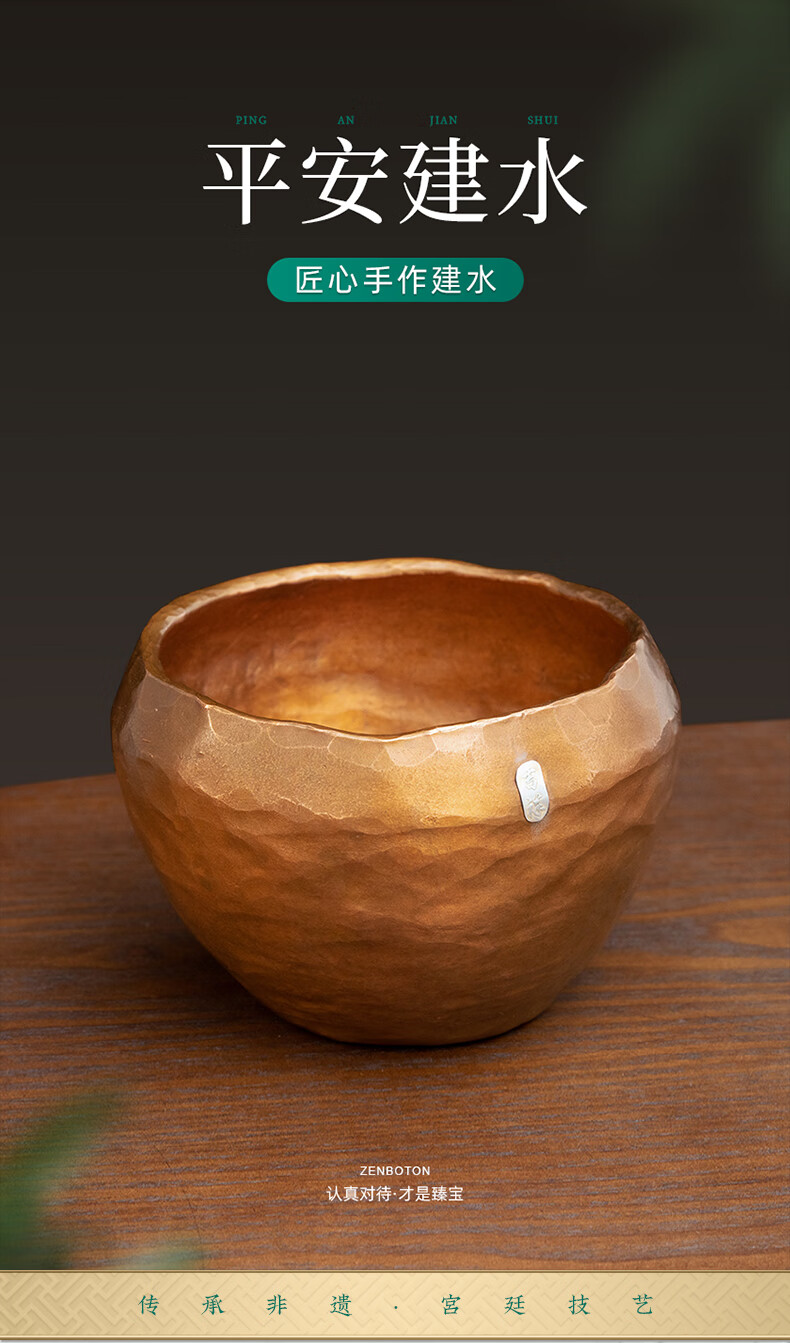 臻宝堂铜建水纯手工锤纹废水茶渣桶中式家用水孟加厚铜制茶洗茶具零配件 平安建水 容量约1100ml