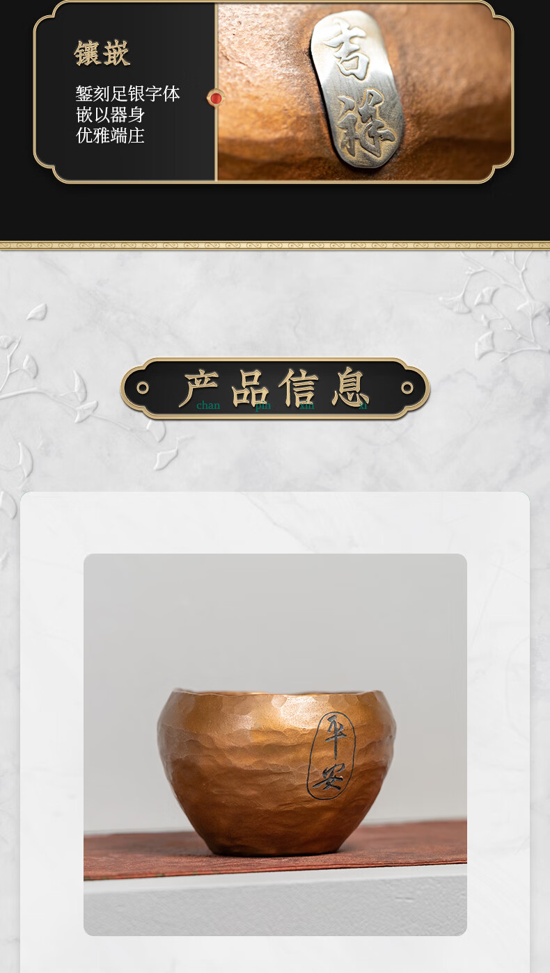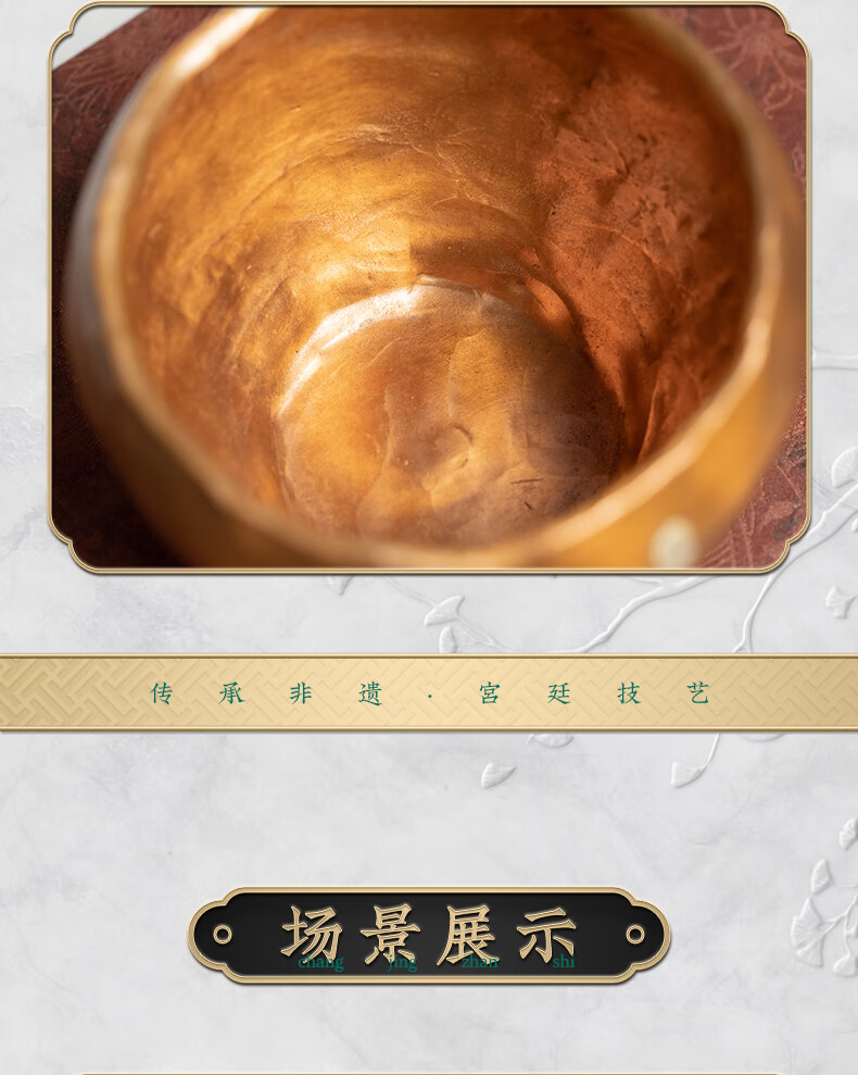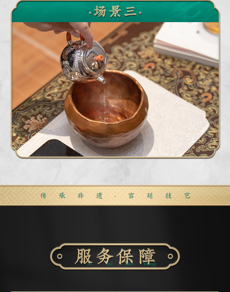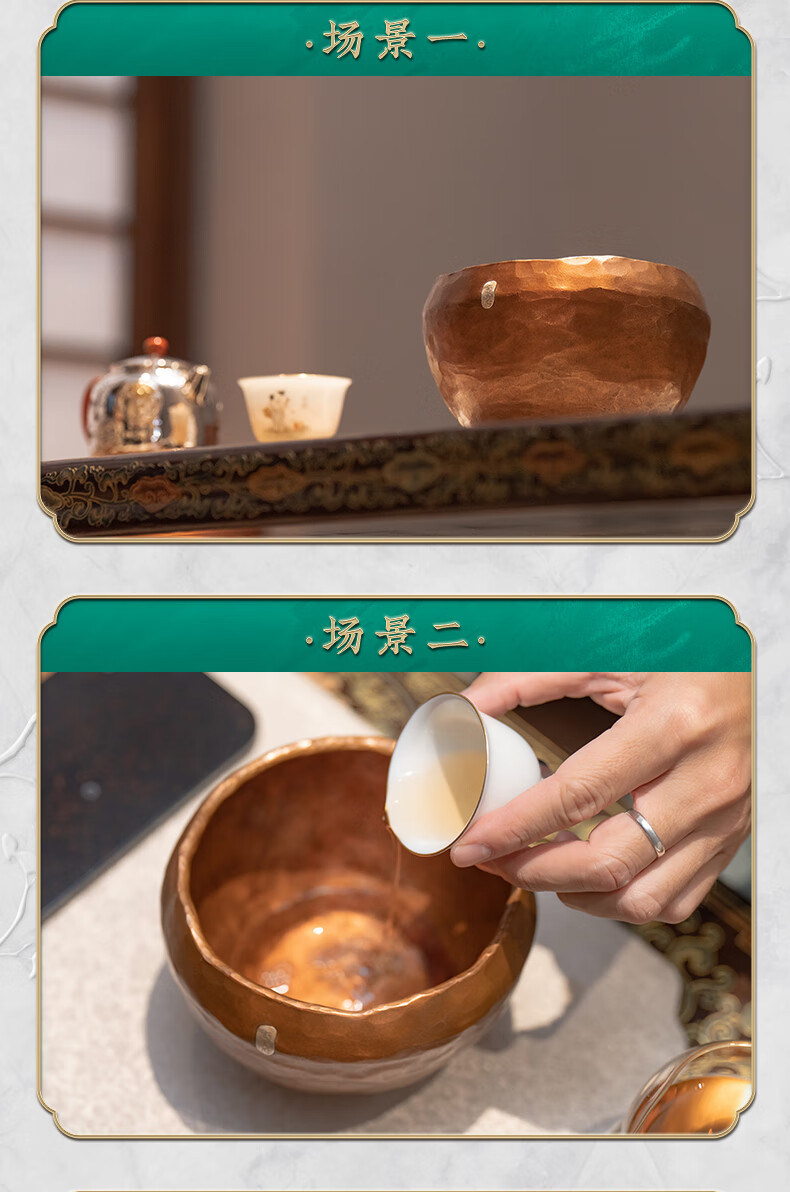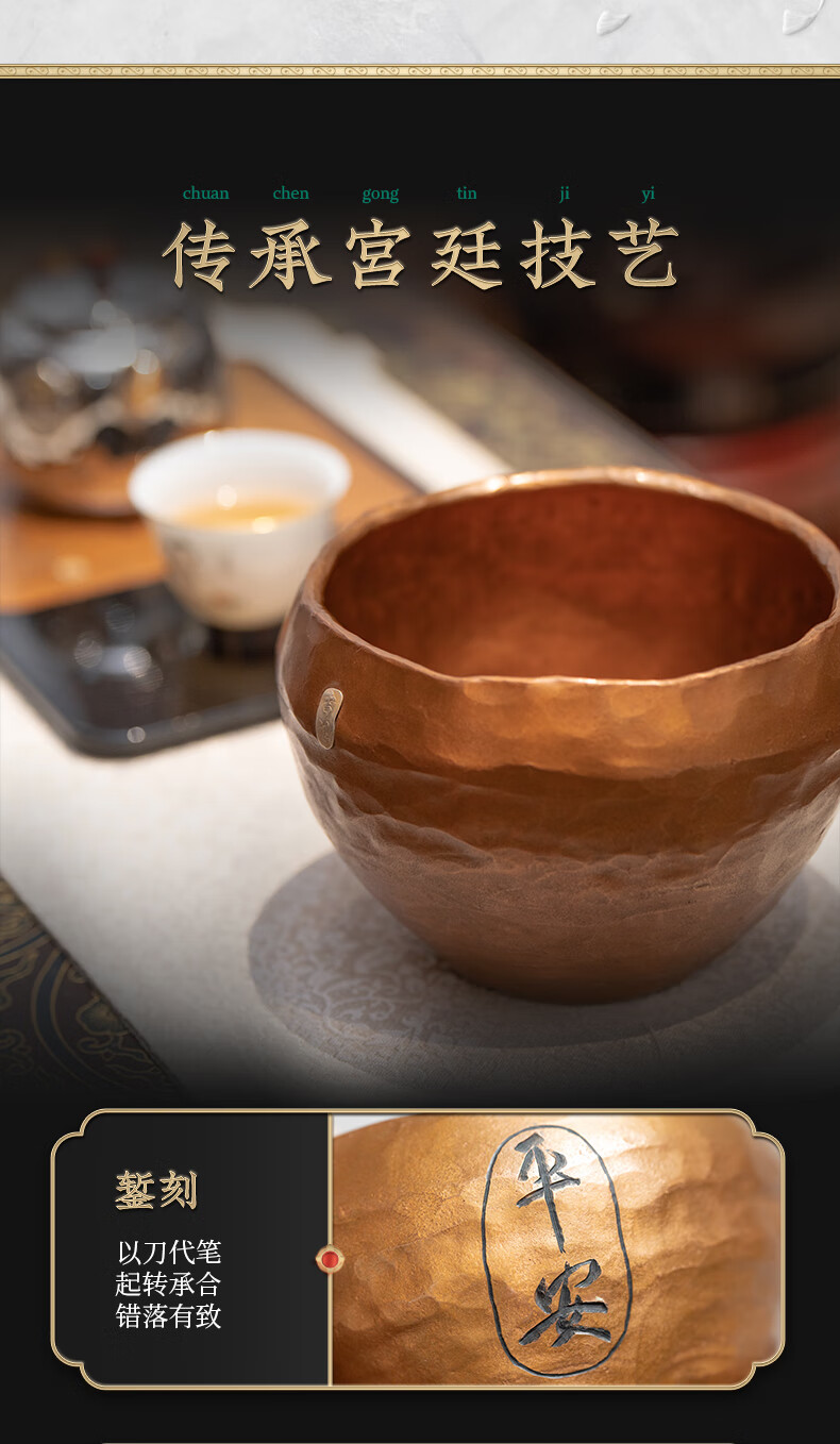 臻宝堂铜建水纯手工锤纹废水茶渣桶中式家用水孟加厚铜制茶洗茶具零配件 平安建水 容量约1100ml