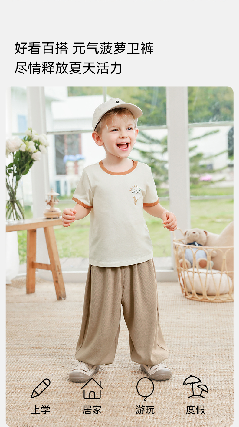 【宝宝服饰】嫚熙童装2025新款夏季男女宝宝长裤透气薄款儿童防蚊裤宽松裤子