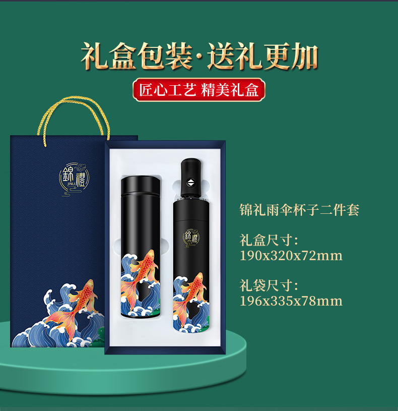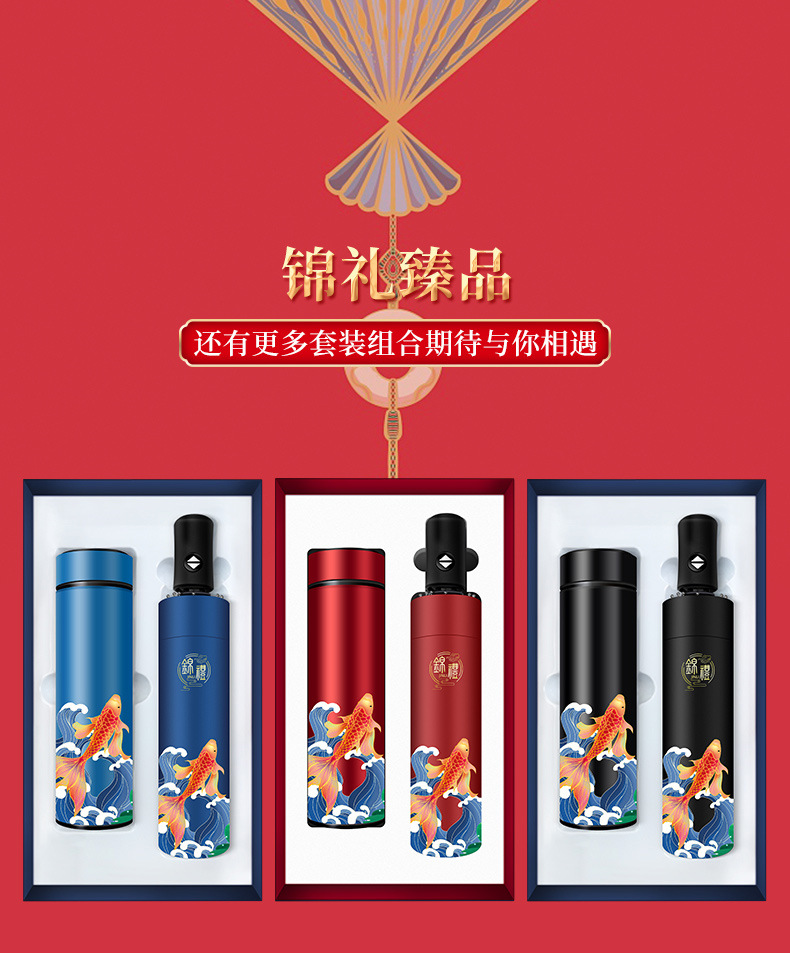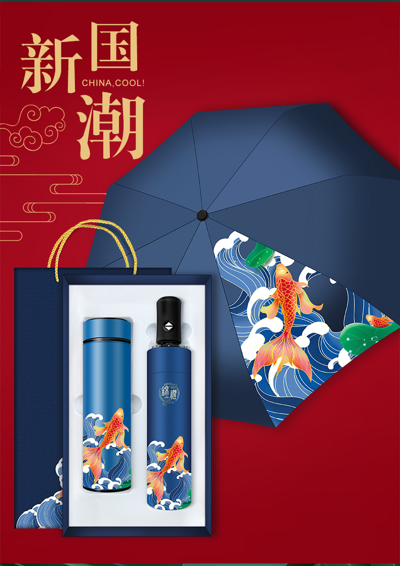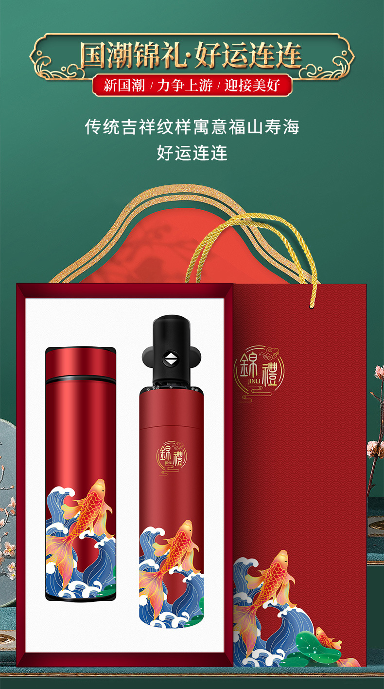 商务礼品国潮锦鲤保温杯雨伞套装公司logo周年庆送客户员工伴手礼