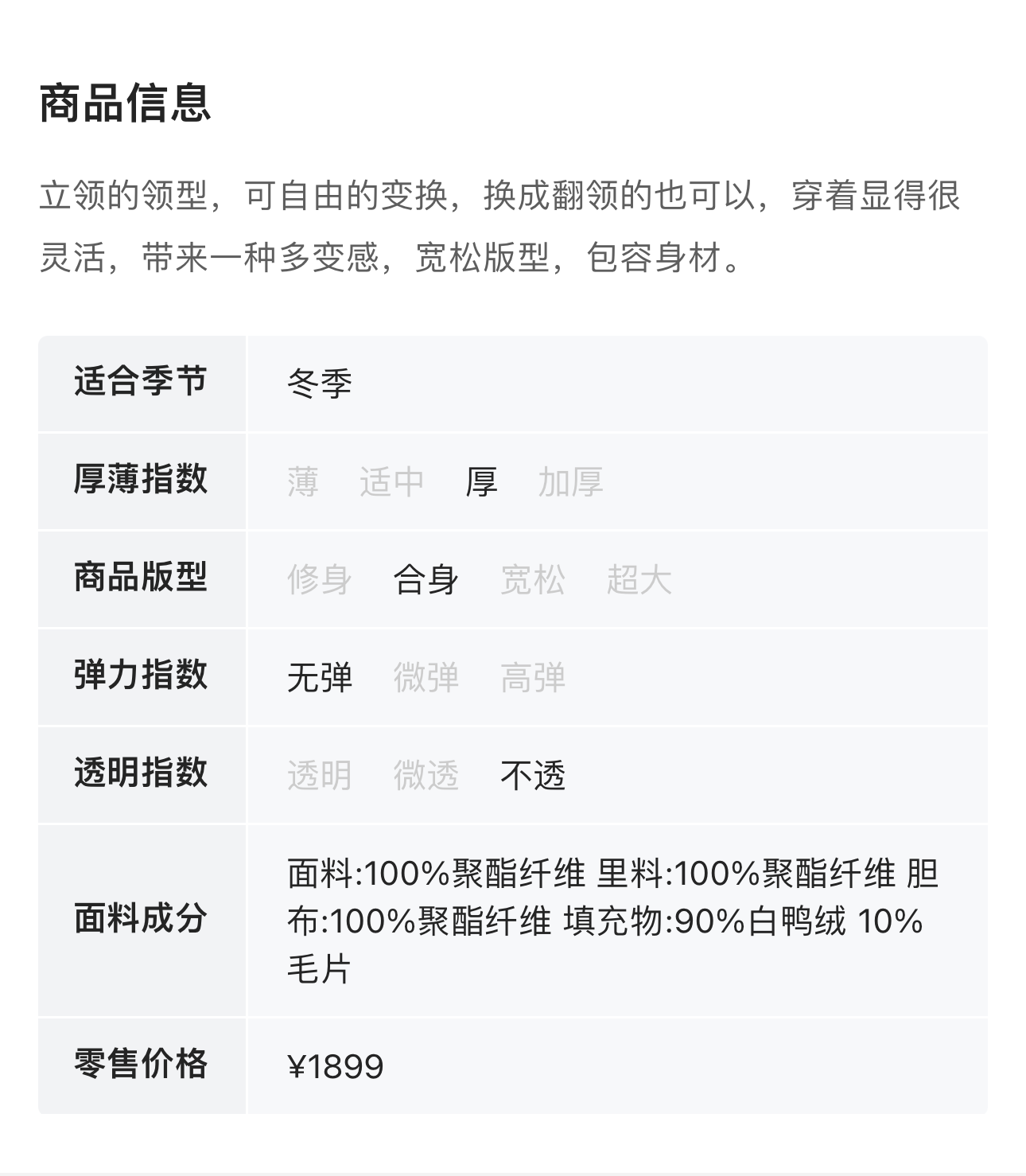 ELLA JADE 翻领宽松羽绒服外套 14931