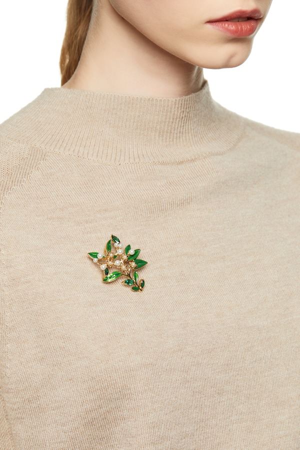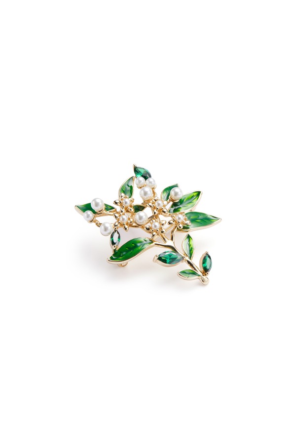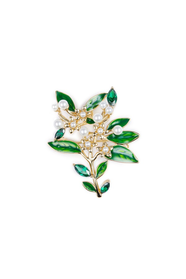 Time Made 花卉枝叶珍珠锆石胸针 8010