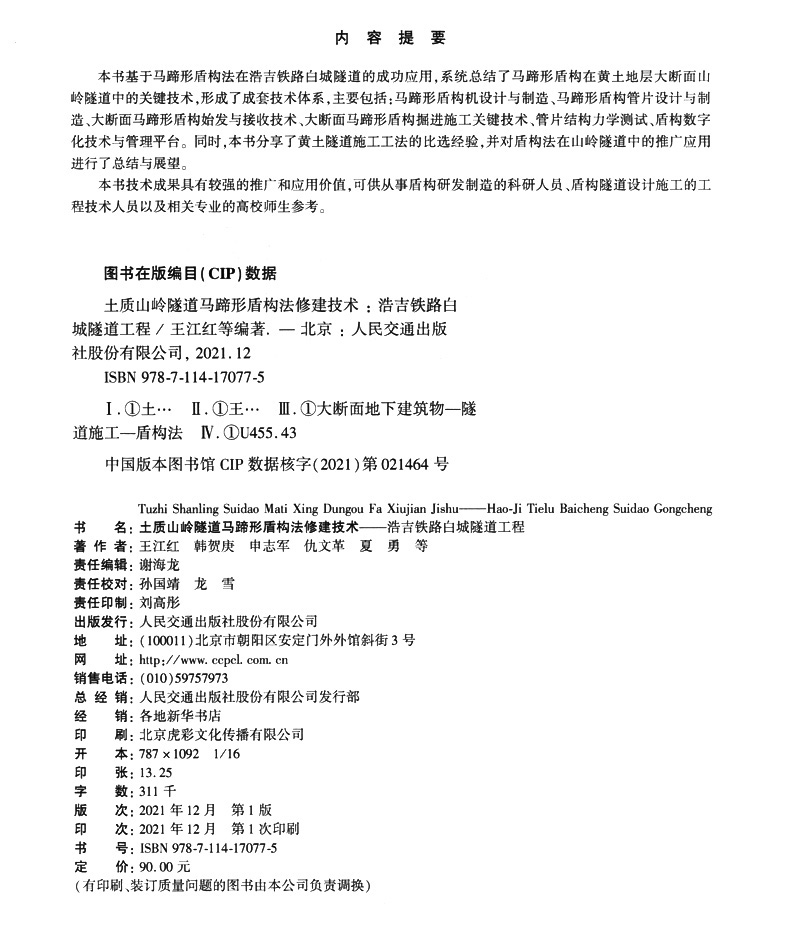 书名:土质山岭隧道马蹄形盾构法修建技术——浩吉铁路白城隧道工程