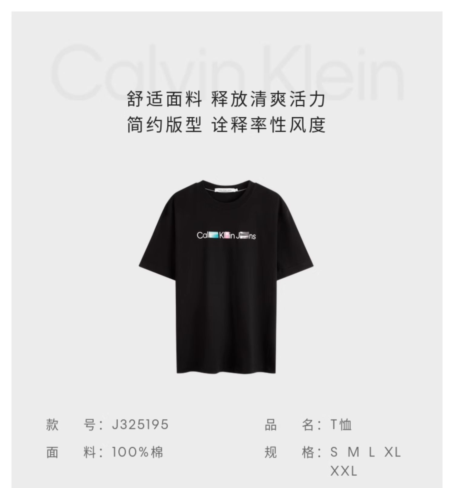 CK 短袖T恤男 J325195-YAF .