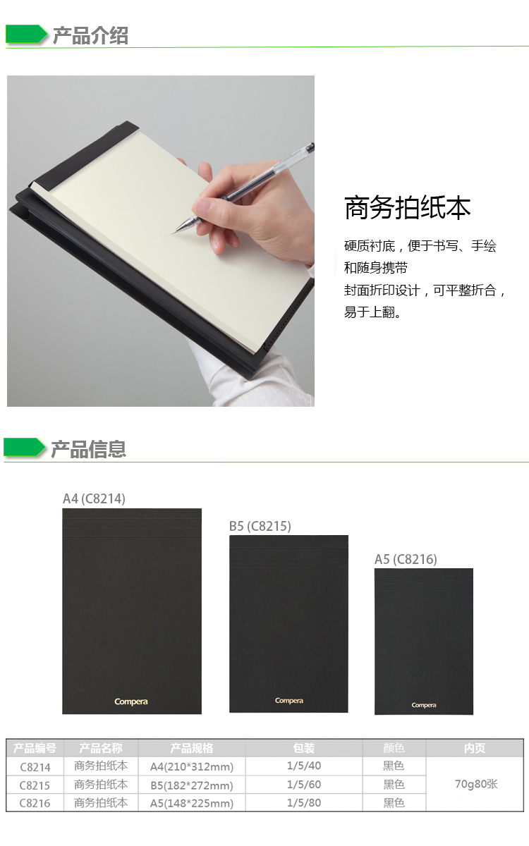 齐心 C8214 Compera商务拍纸本(空白)A4 80张