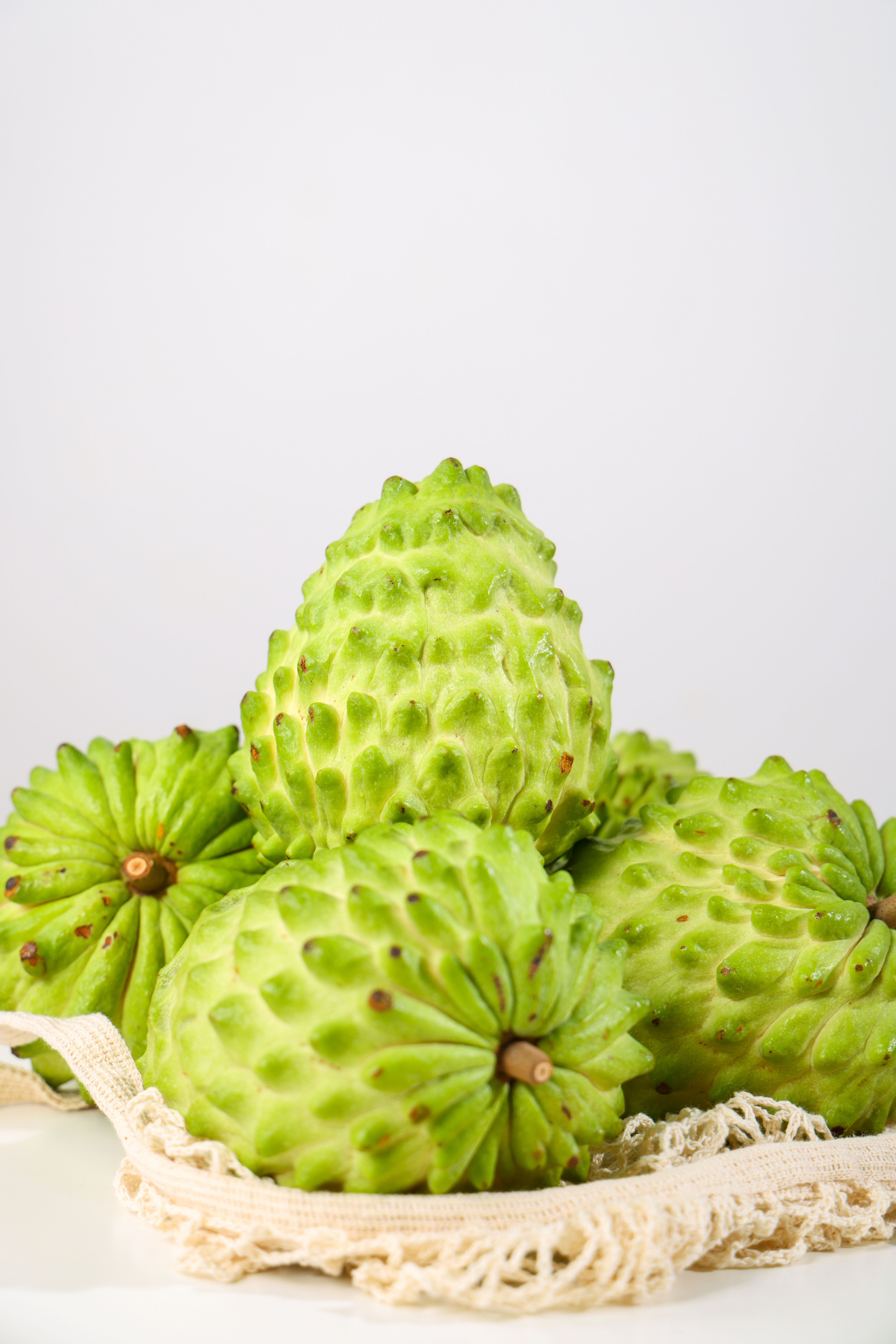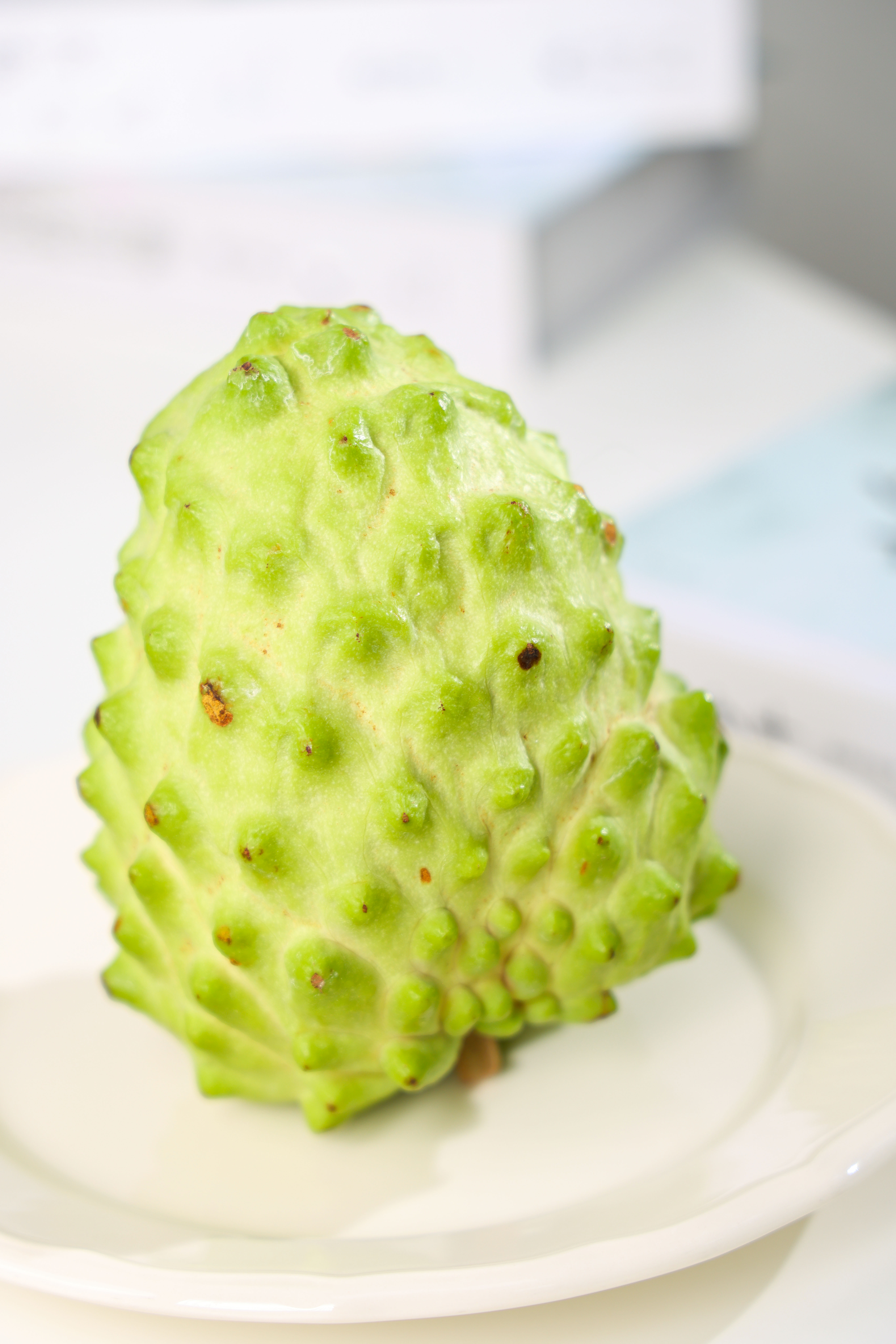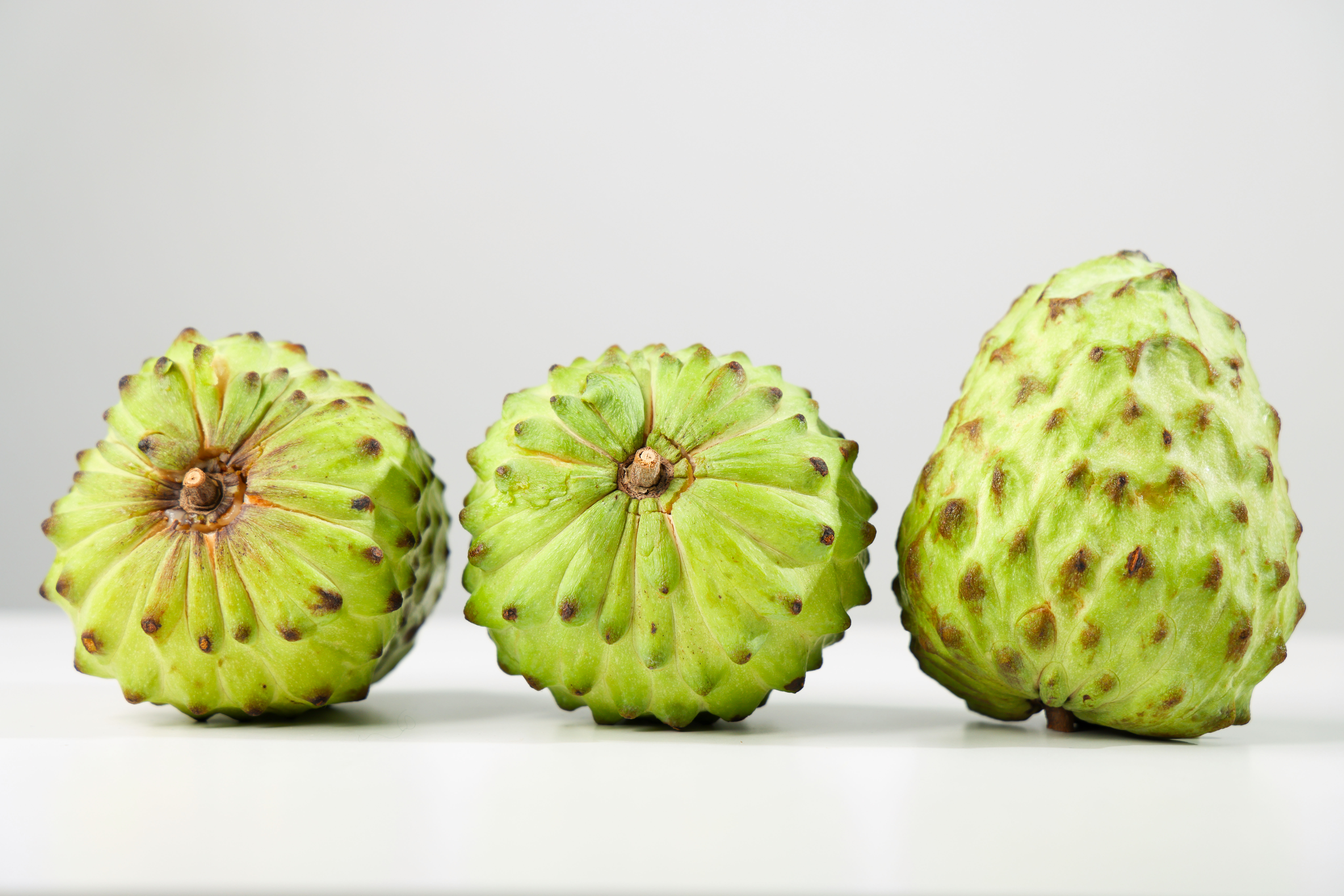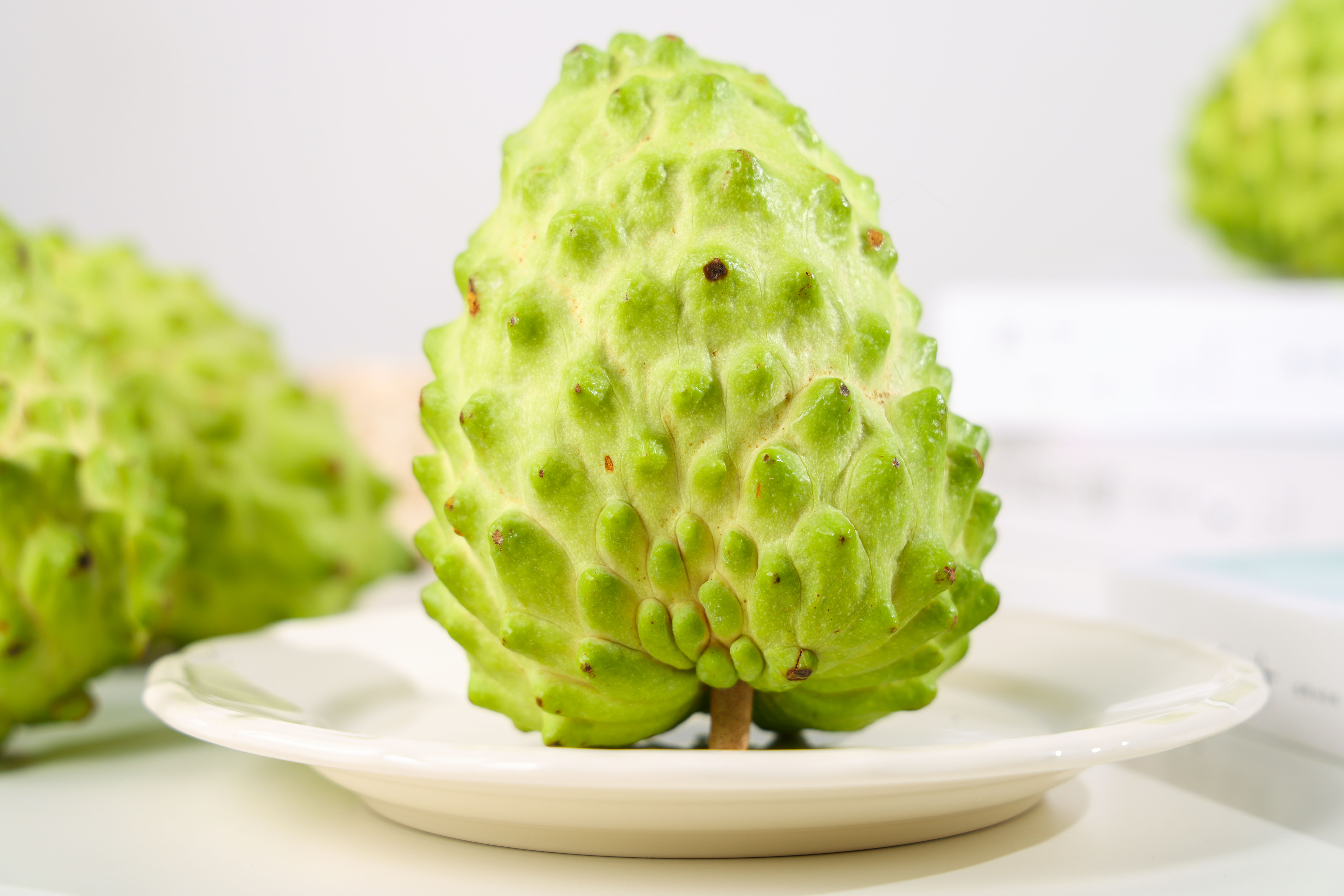 没有成熟的台湾凤梨释迦果是淡绿色的,表面突起的鳞目,就像一颗巨大版的荔枝。