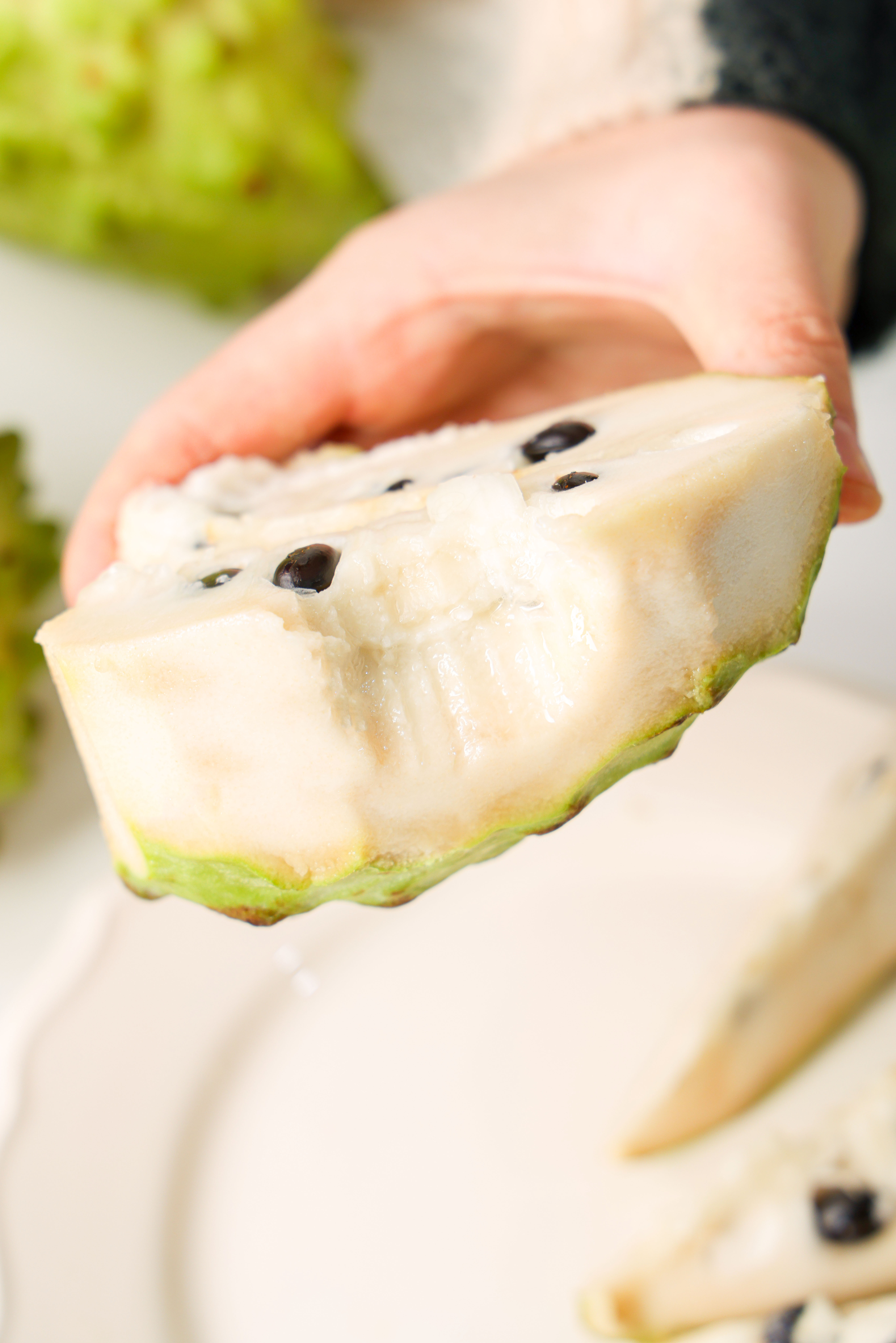 果肉很嫩,轻轻一抿,甜美的让人一下就陷入了释迦果甜软的怀抱。